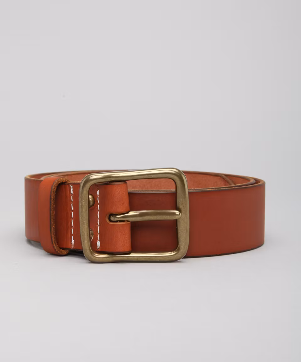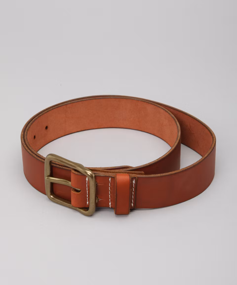 Leather belt in high quality leather from SB Foot Tannery, Red Wing, Mn. Replaceable brass buckle. Made in USA.