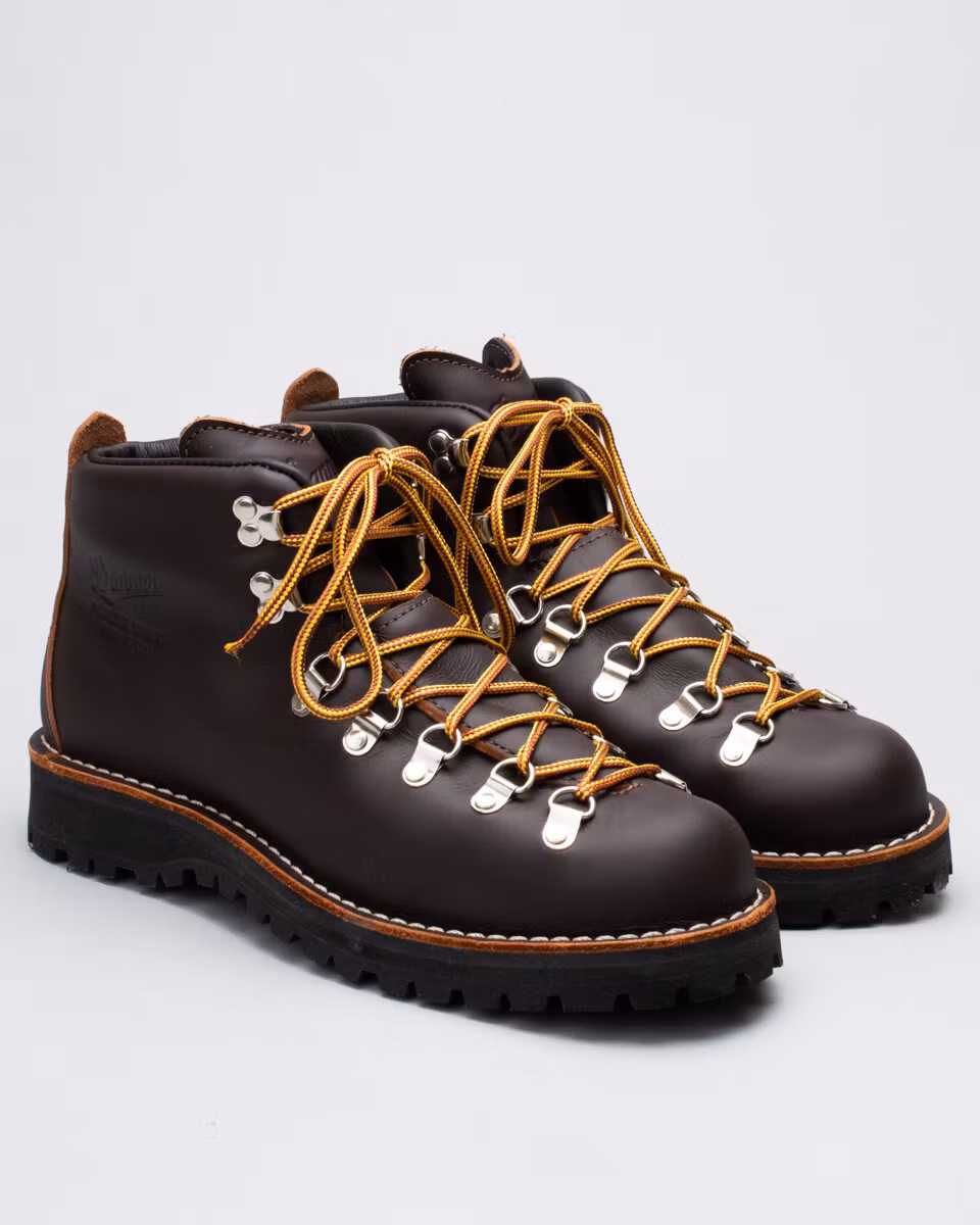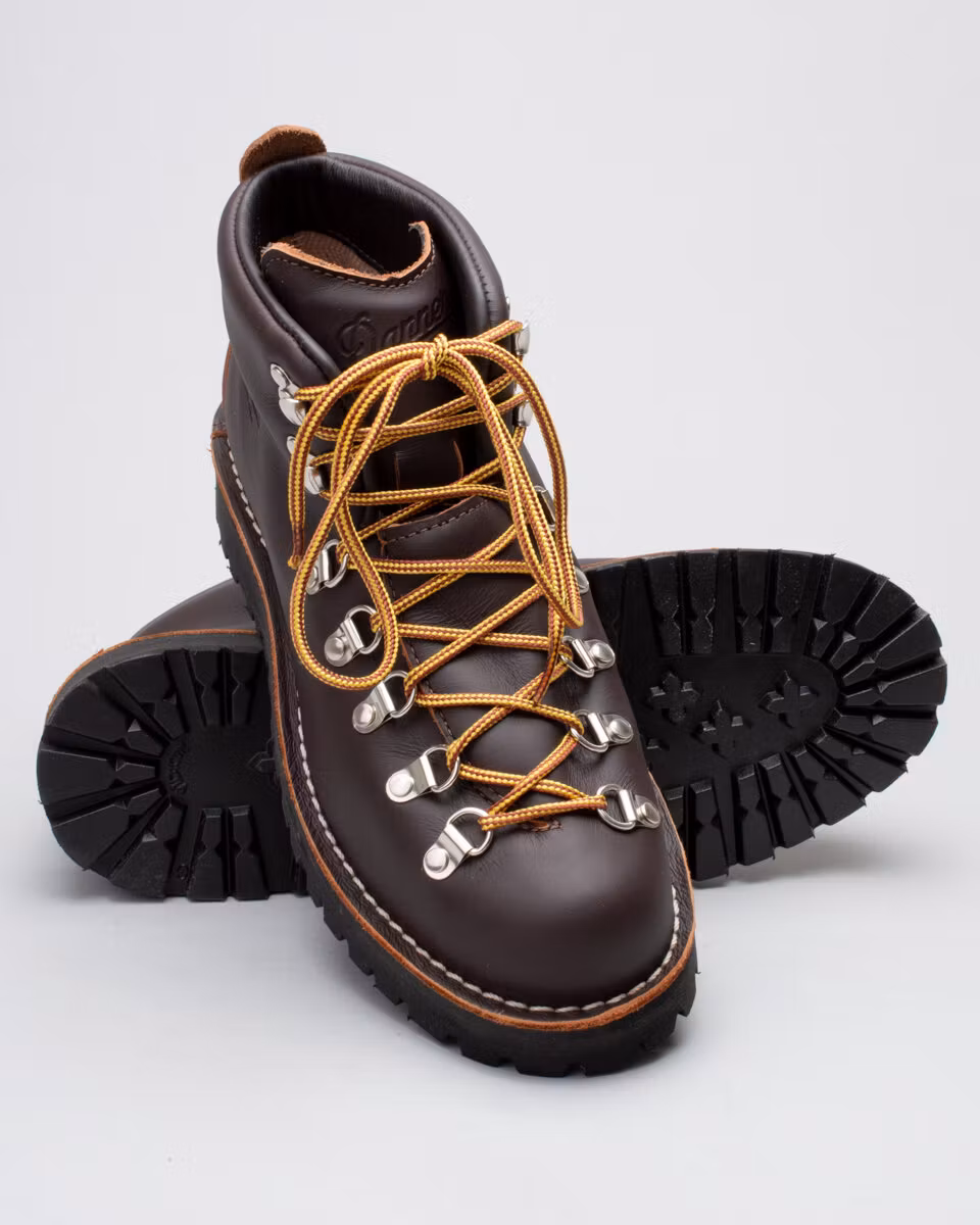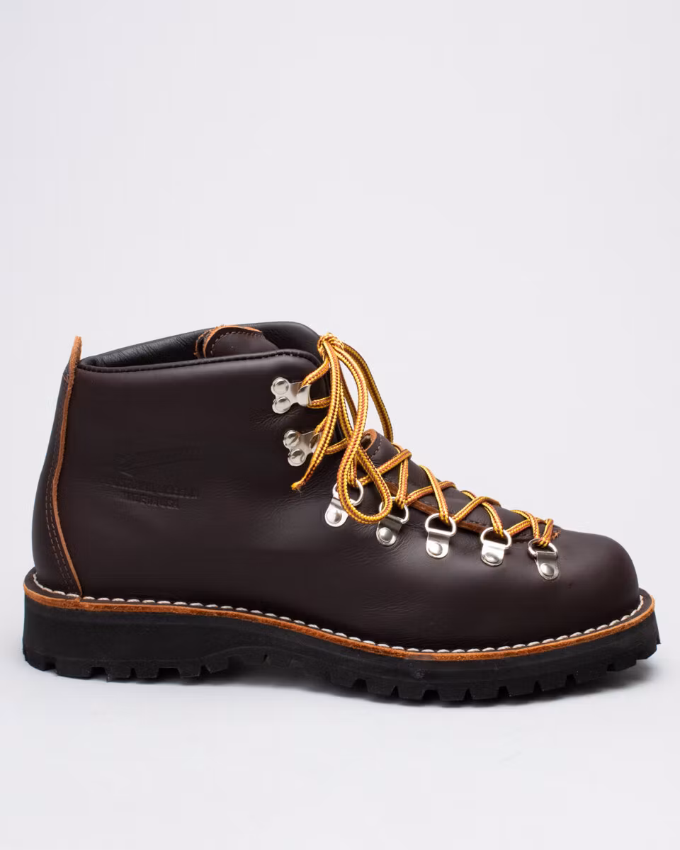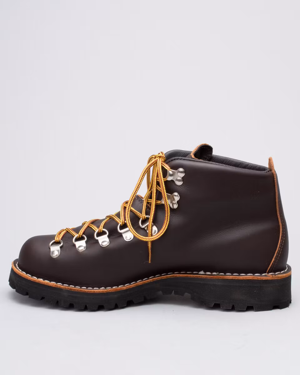 When the Danner Mountain light hit the market over 40 years ago it set the standard for every new hiking boot that hit the market. Upper in dark brown full grain cowhide. Textile lining with Gore-Tex membrane. Vibram Kletterlift outsole for extra shock absorbation and durability. Stitch Down construction. Extra laces. Wide last. Made in USA.