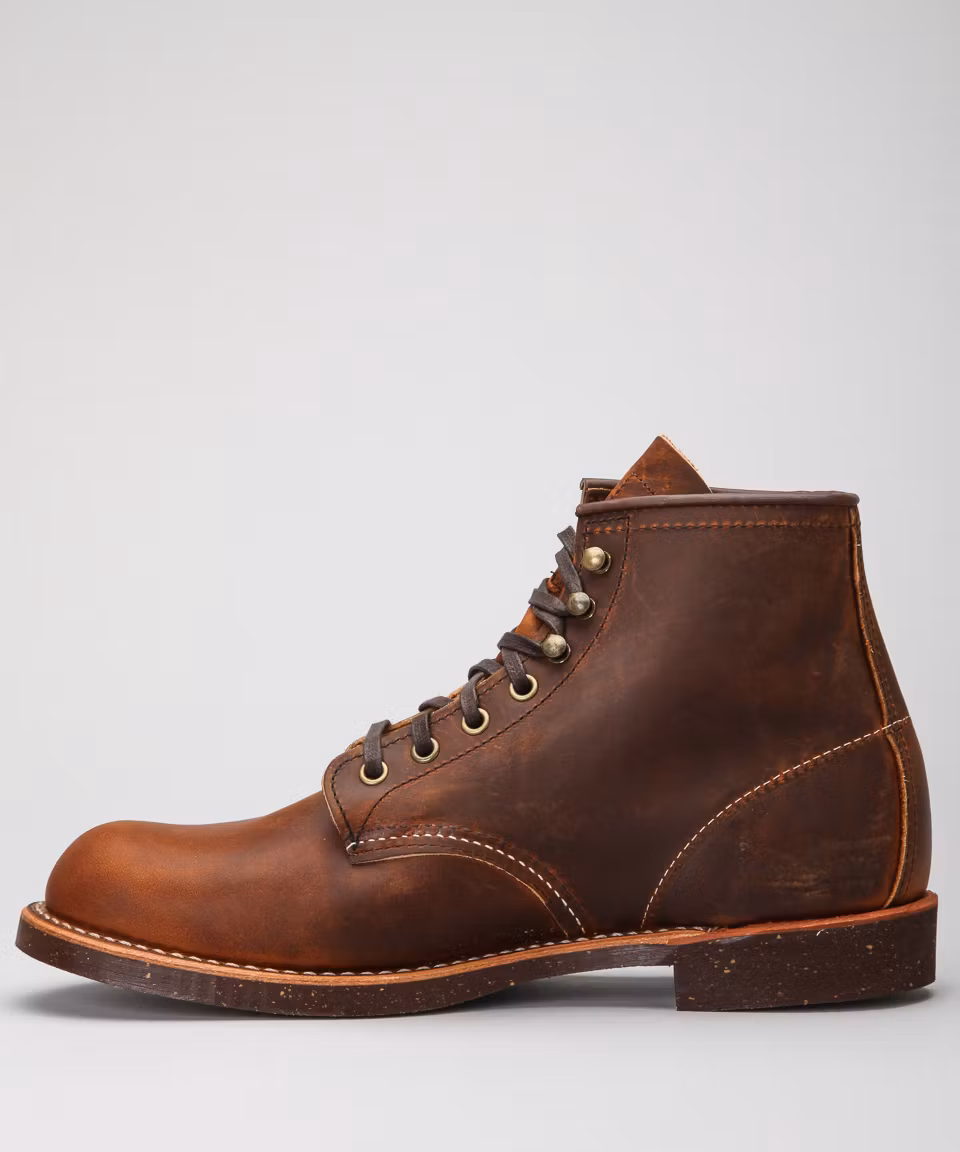 Red Wing Shoes model Blacksmith. Built on the same last as the classis Iron Ranger but without the cap-toe. Leather insole. Vibram 430 Mini-lug rubber outsole. Goodyear welt construction. Made in USA.