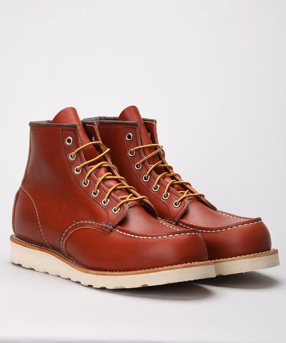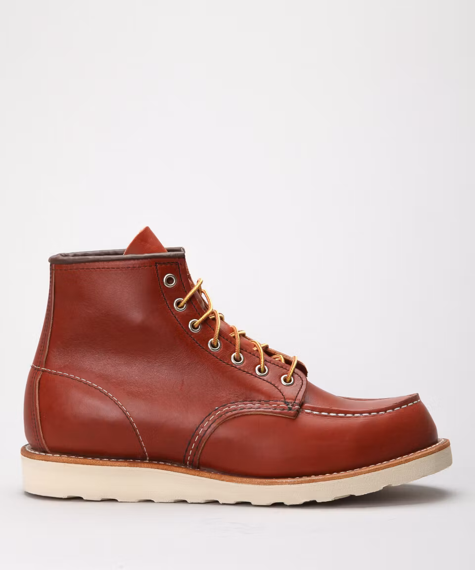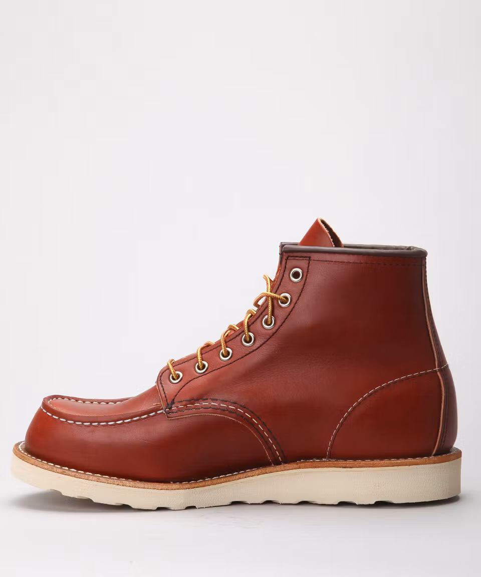 Red Wing's classic, Irish Setter, Moc-Toe. Upper in Oro-Russet leather. Leather insole. Rubber outsole. Goodyear welted construction. Made in USA.
