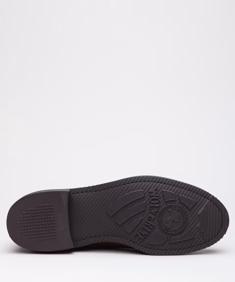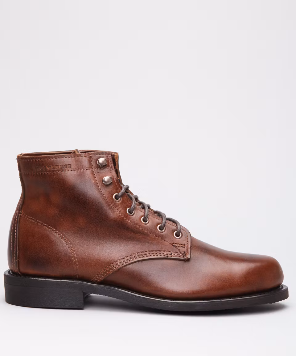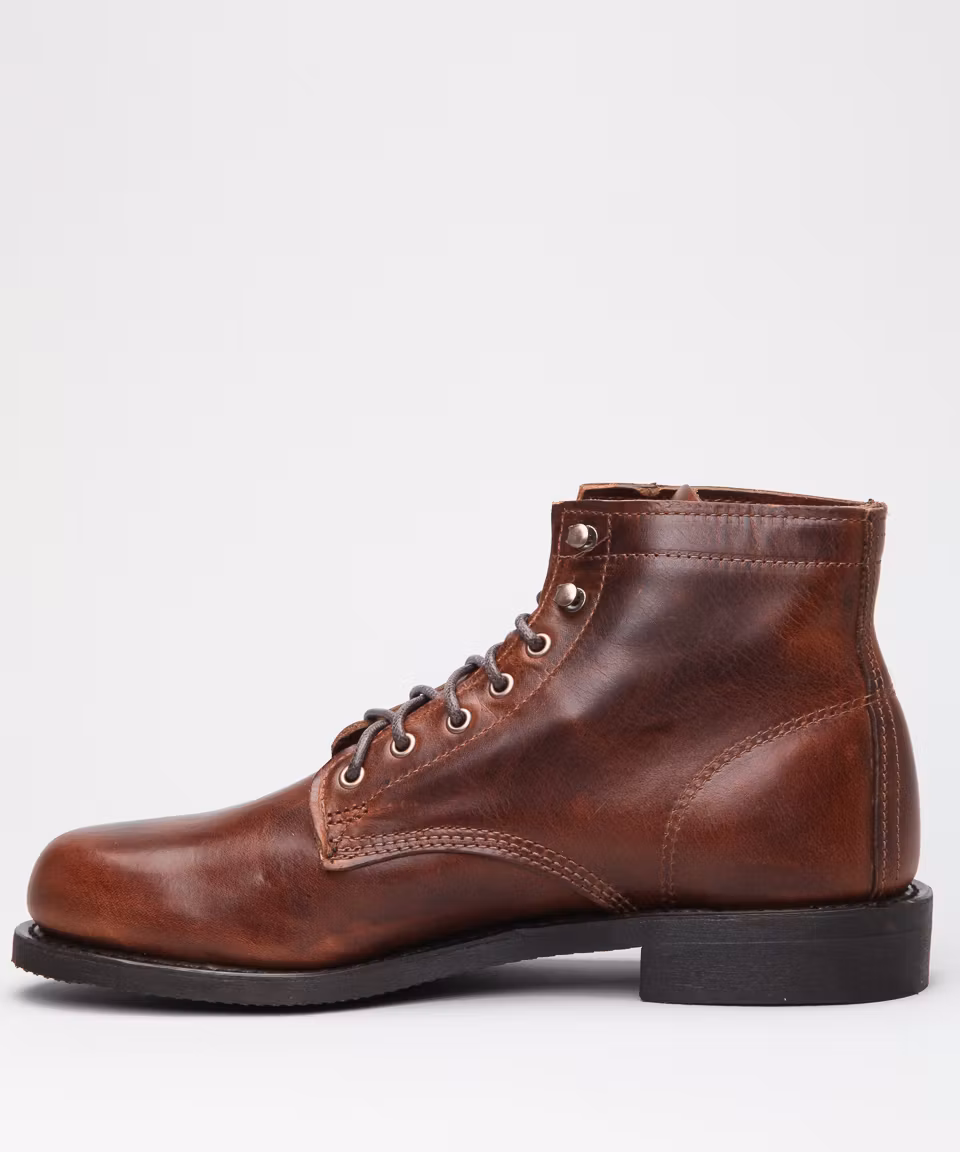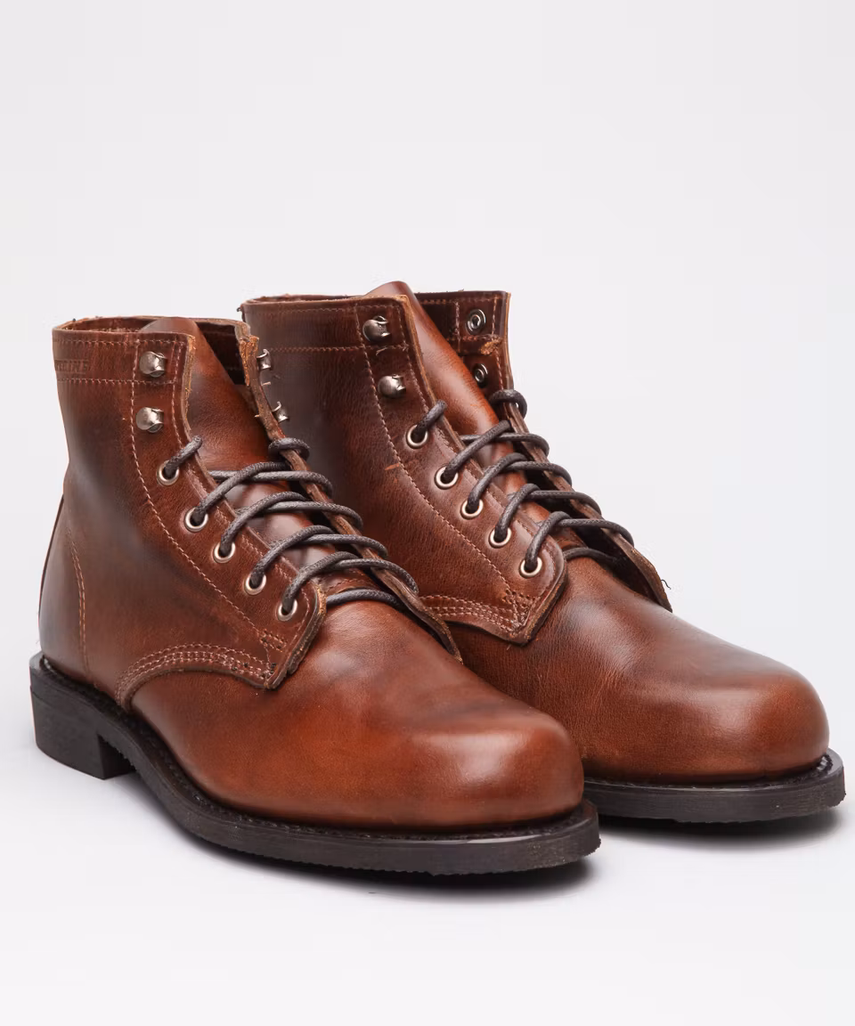 Brown leather boot in oiled, full grain, leather. Leather insole. Goodyear welt construction. Made in USA. Large in size.