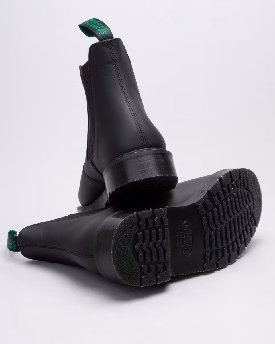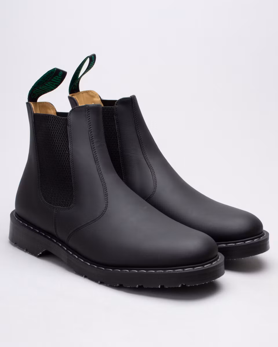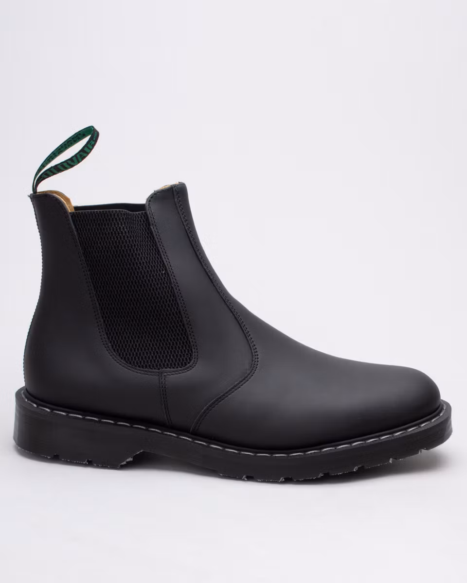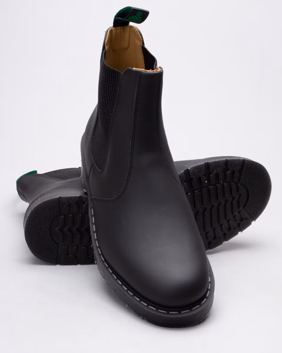 Chelsea boot from British brand Solovair. Leather and textile lining. Leather insole. Rubber outsole with air cushions for maximum comfort. Goodyear welted construction. Made in England. Standard width, F.