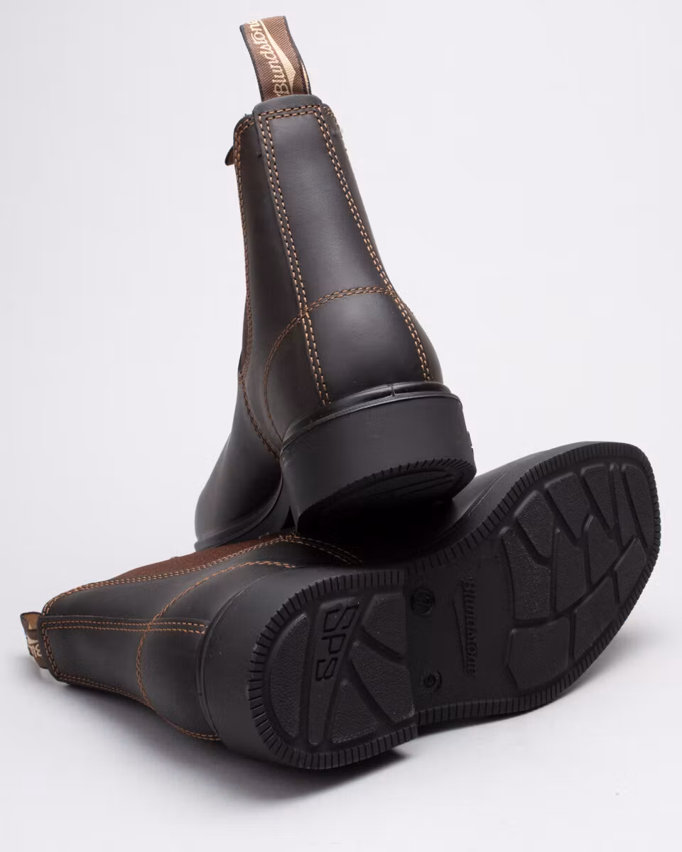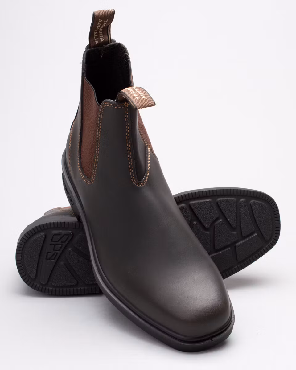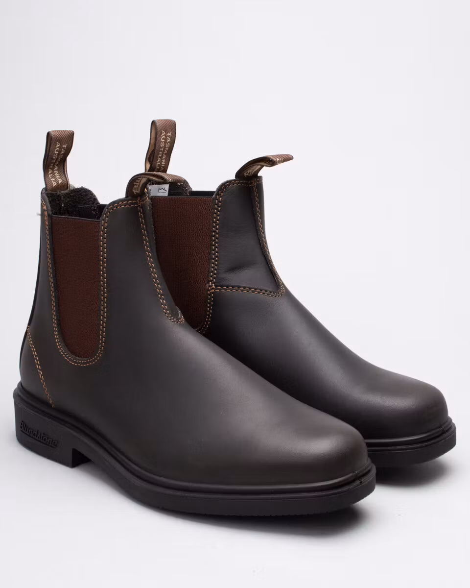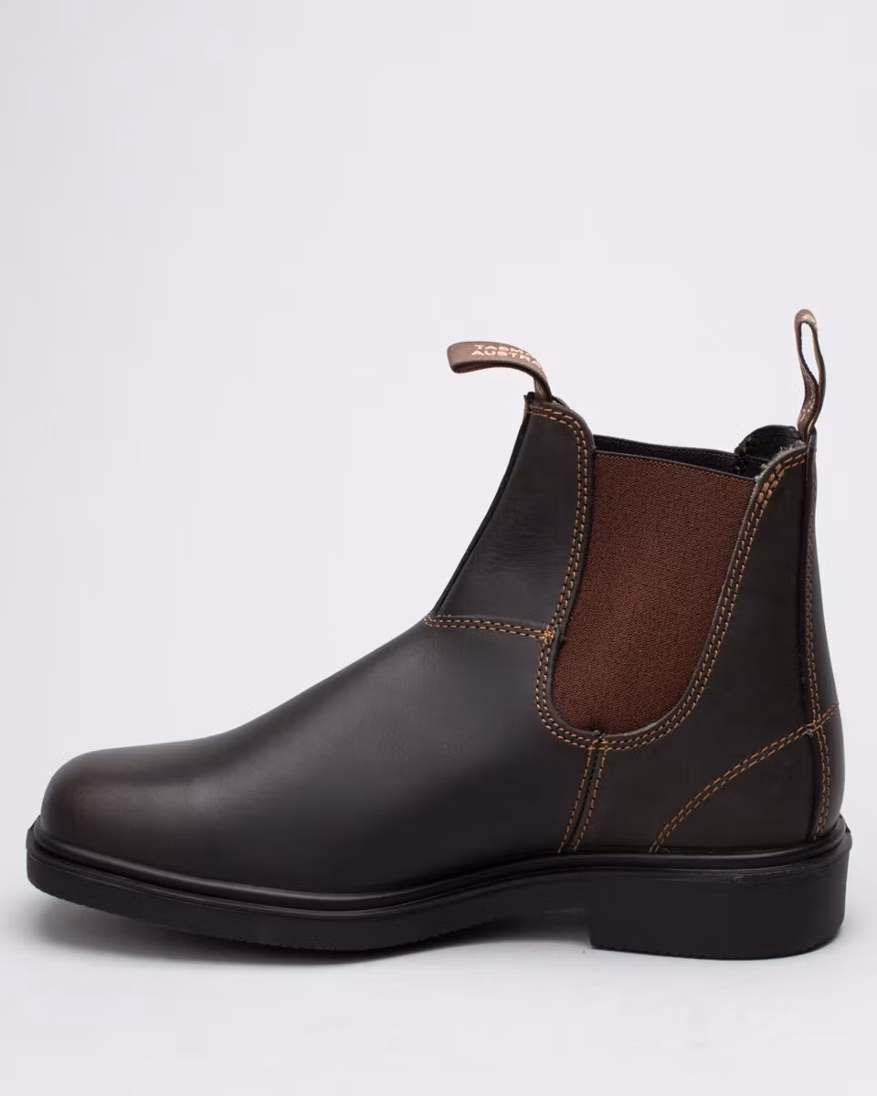 Blundstone's Dress Boot in stout brown leather. Slightly larger in sizes then the classic 500/510 model. Dyed through leather. Dubble stitching.