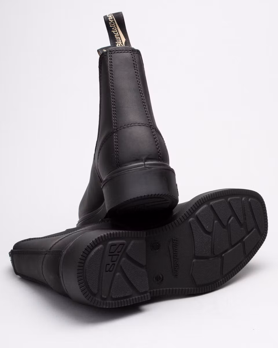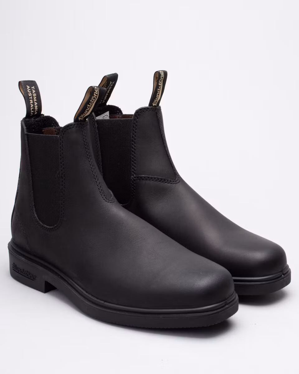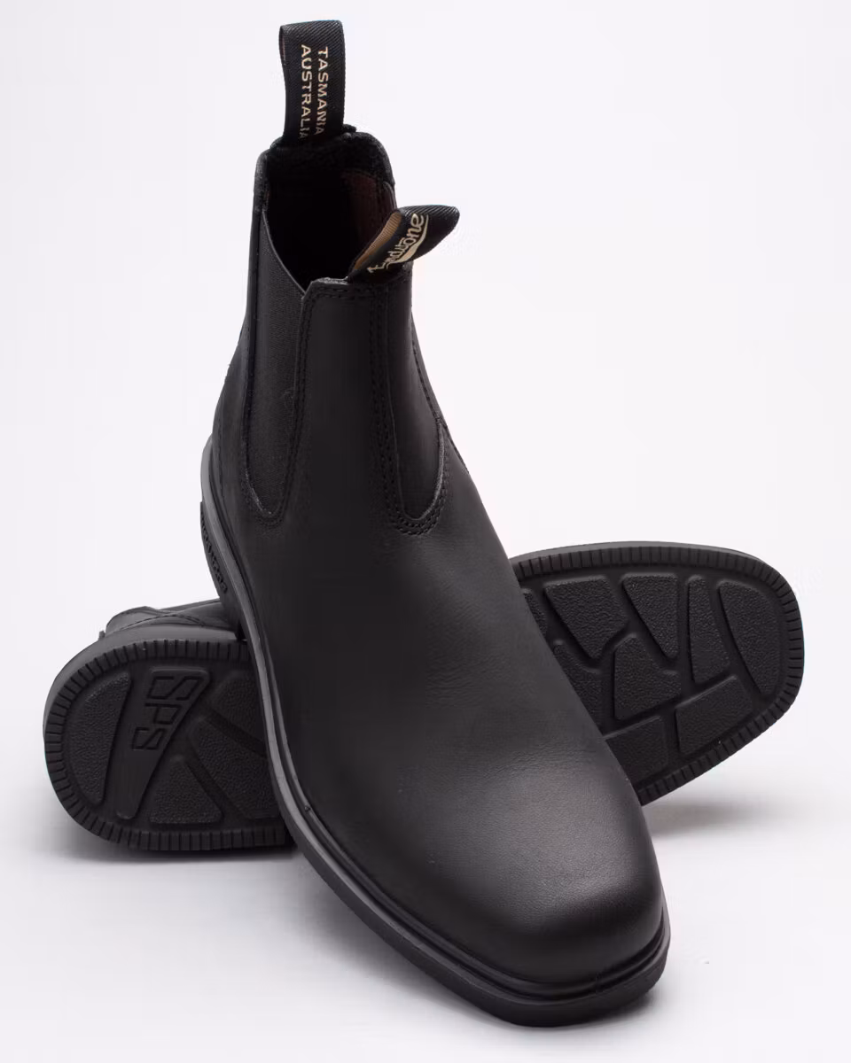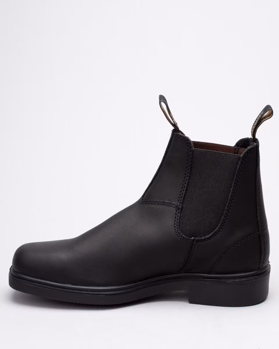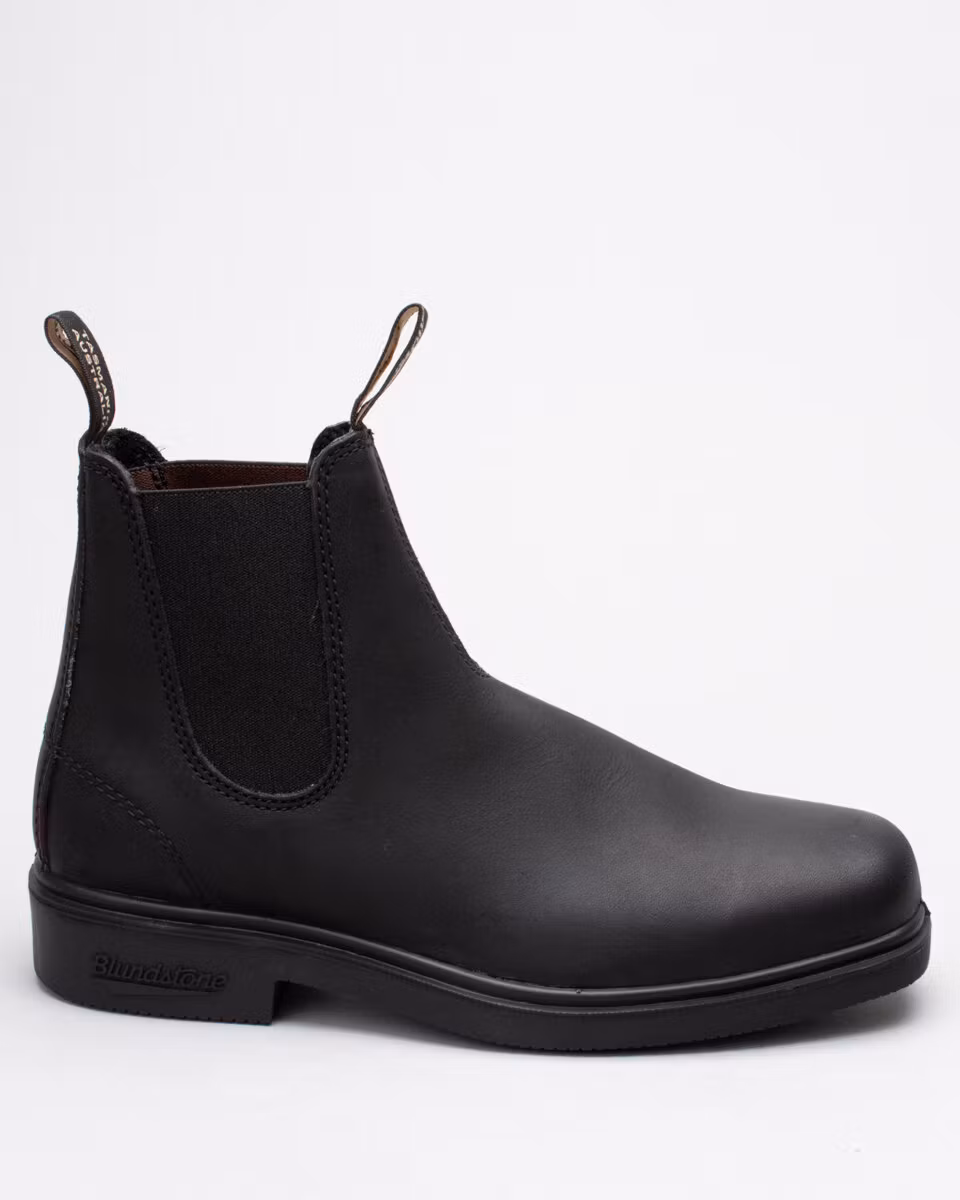 Blundstone's Dress Boot in black leather. Slightly larger in sizes then the classic 500/510 model. Dyed through leather. Dubble stitching.
