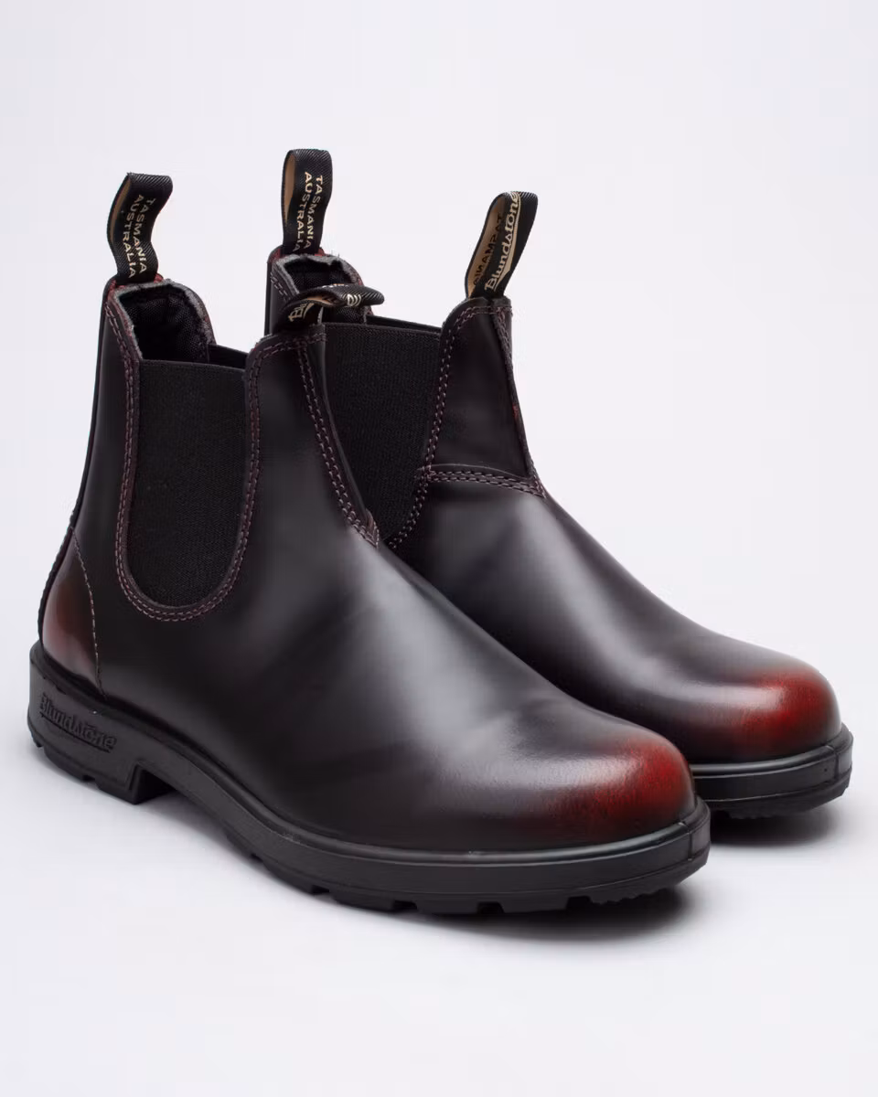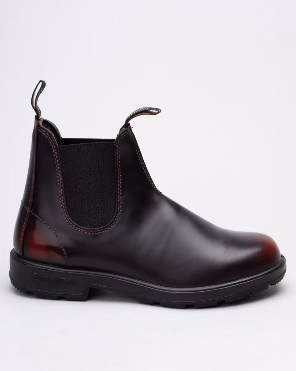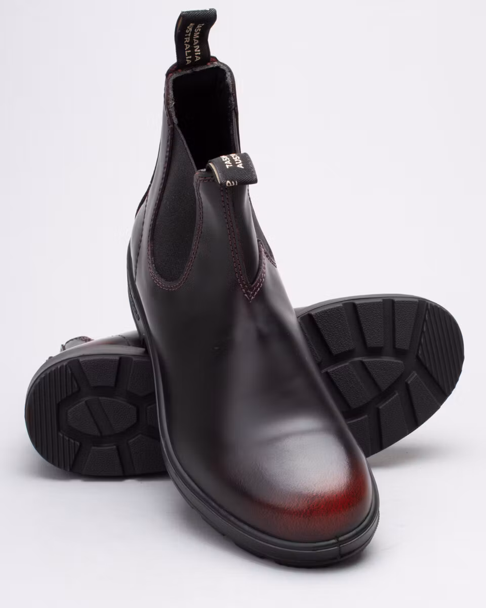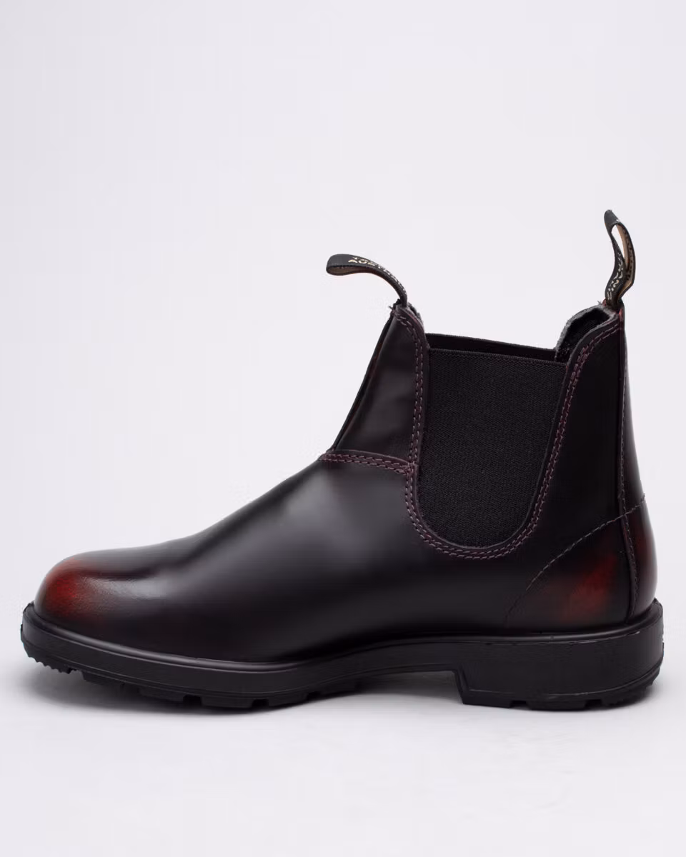 The classic Blundstone round toe in bordeaux coloured, brushed, premium leather. Comfort footbed. Shock absorbing outsole for durability and comfort. Full textile lining.