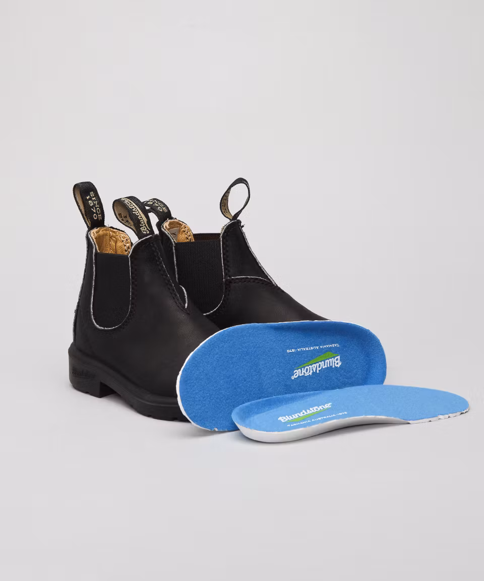 Blundstones classic model 500 in childrens sizes. Black leather with leather lining. Comes with an extra insole which can be removed as the childs feet grows.