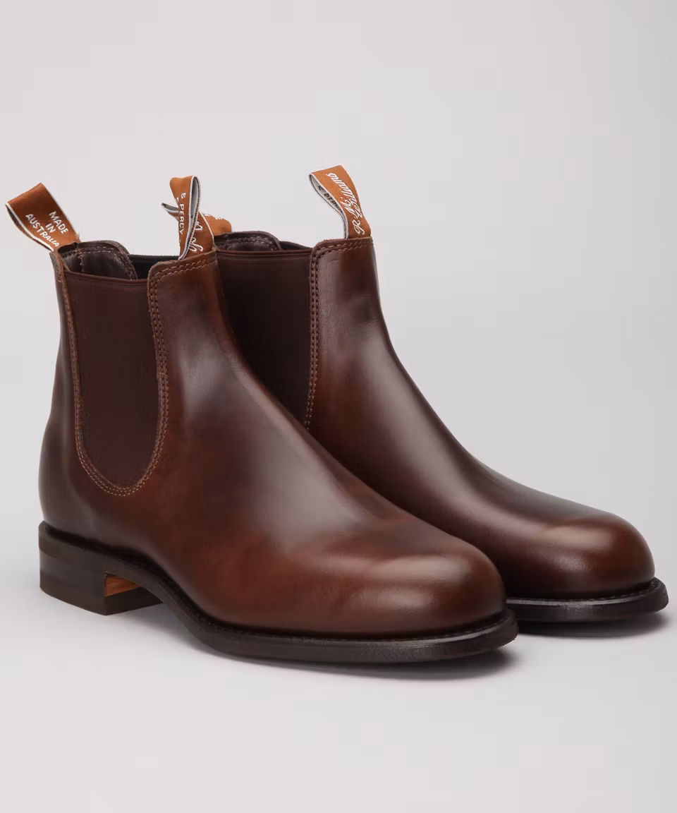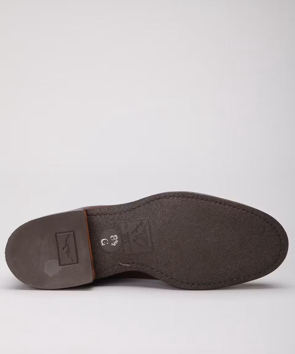 Rum yearling calfskin. 100% calfskin lining. Leather insoles. Rubber out soles. Goodyear welted construction. Hand made in Australia.