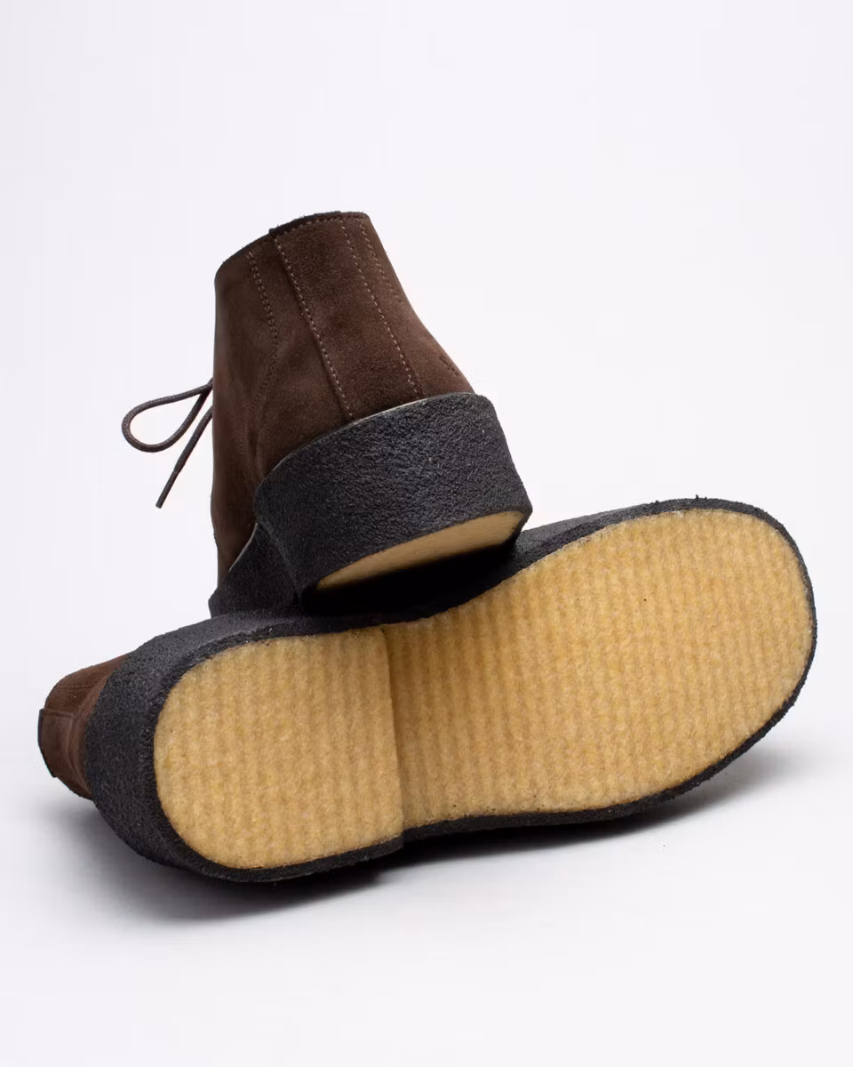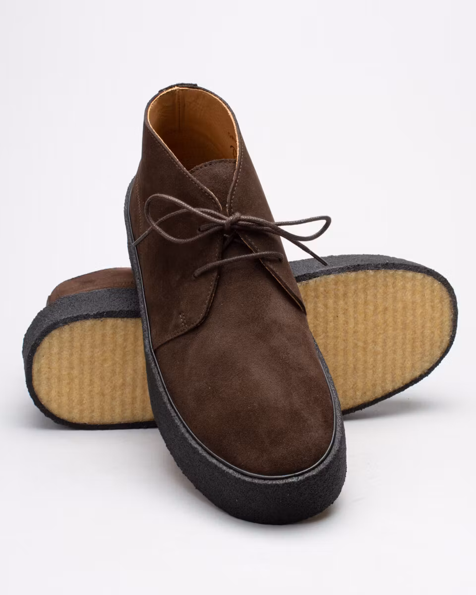 Playboy's classic chukka since 1936 in dark brown suede. Natural rubber outsoles. Leather insole. Full leather lining. Made by hand.