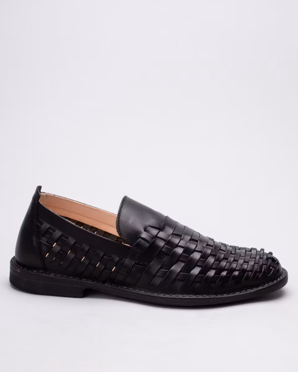Woven loafer from Italian shoemaker Astorflex. Crafted from black calf leather with a breathable unlined construction. Features a removable leather-lined insole for added comfort. Finished with a hybrid leather and rubber outsole and durable stitch-down construction. Made in Italy.