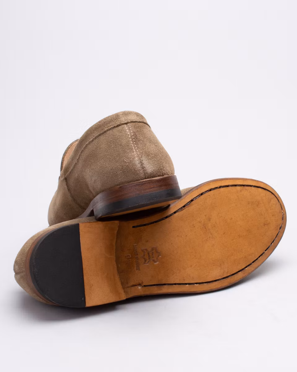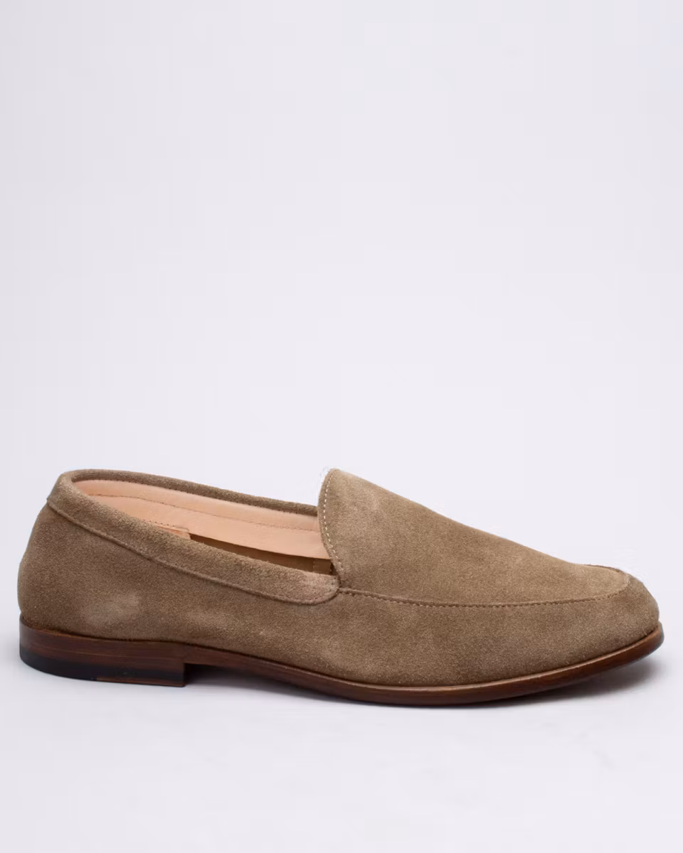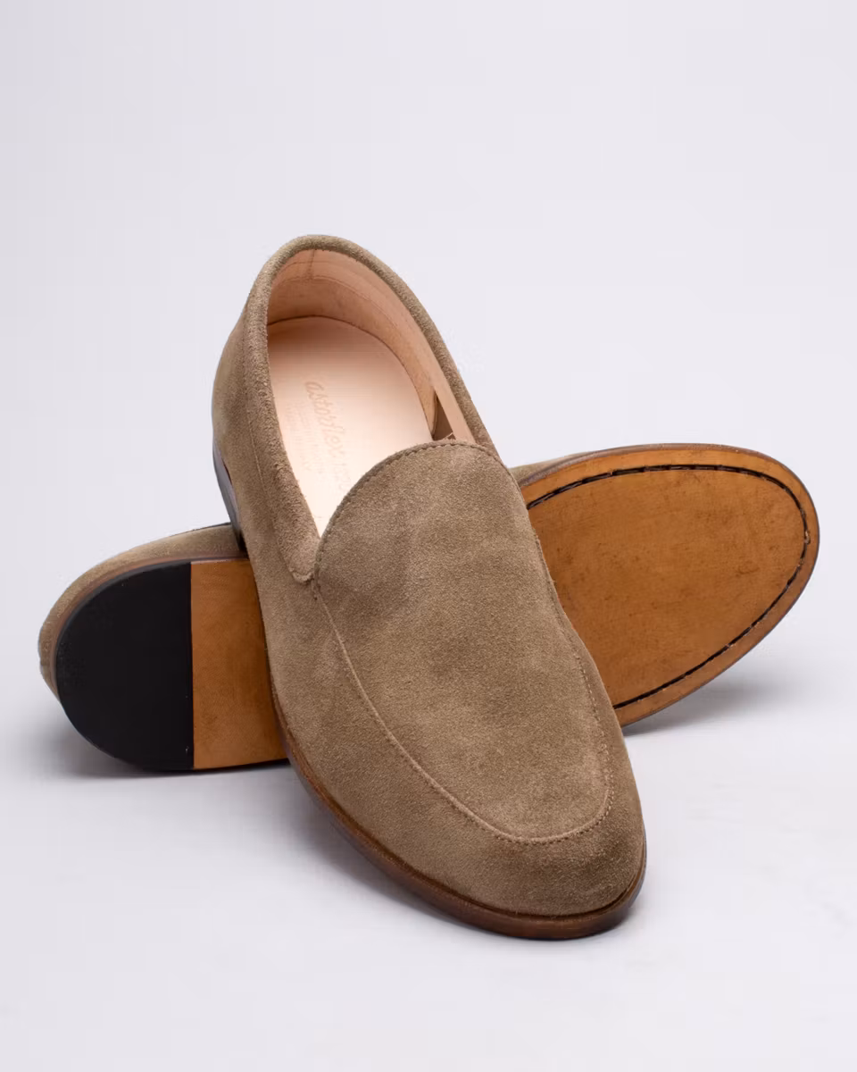 Loafer from the Italian brand Astorflex. Upper in smoke grey "rough out" suede. Unlined. Removable, leather-covered insole. Leather outsole. Stitch-down construction. Made in Italy.