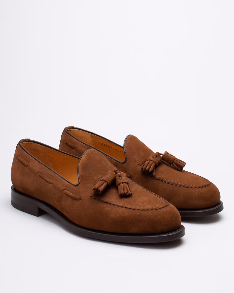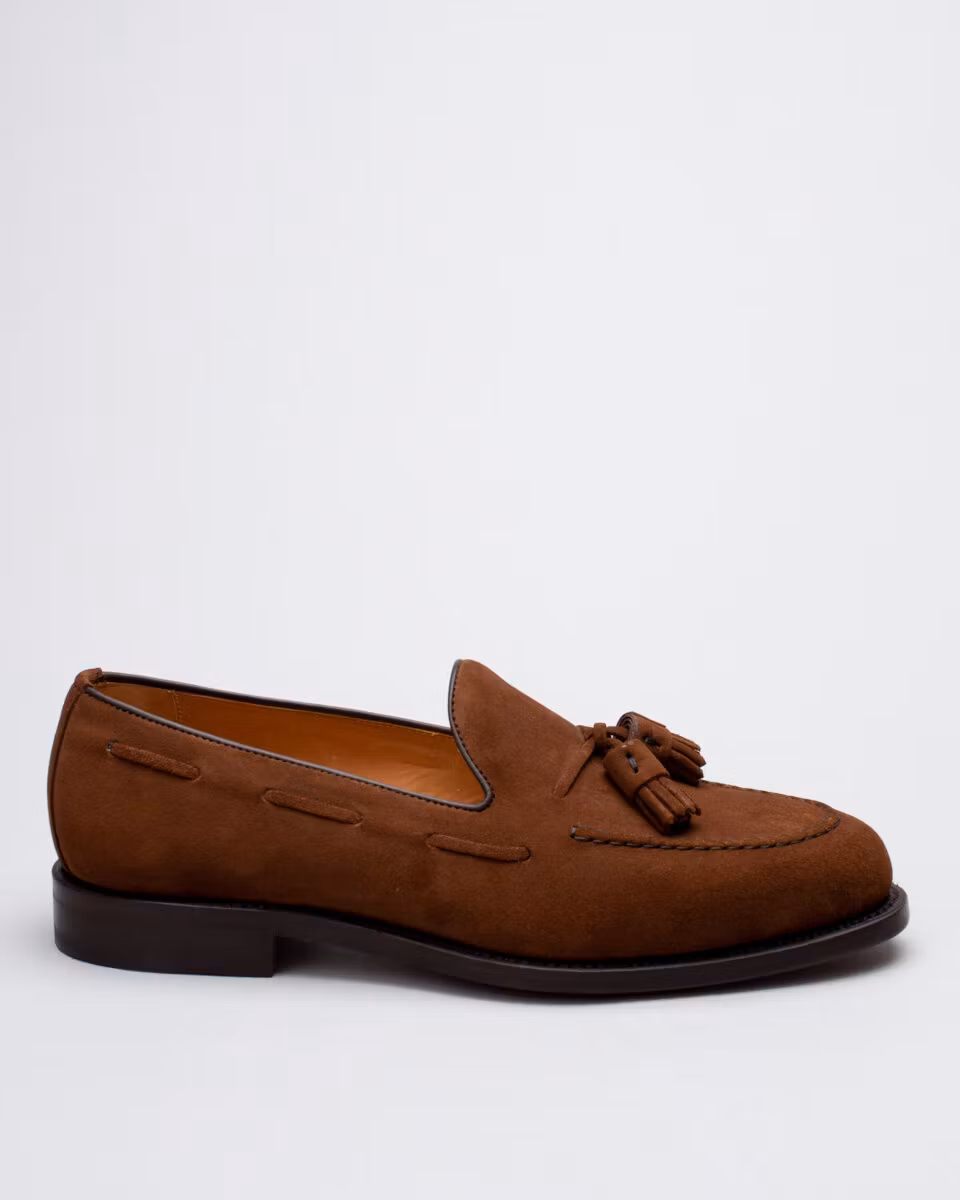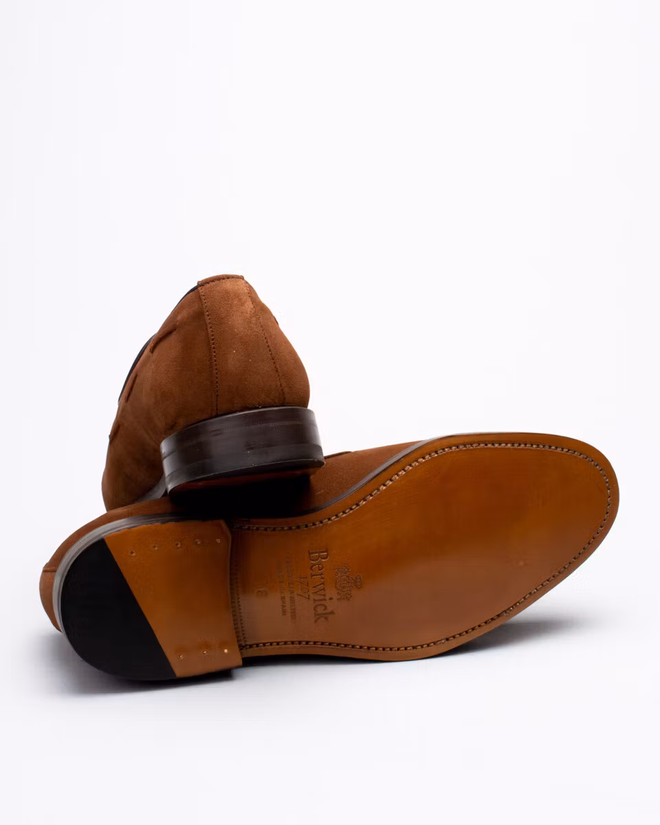 Classic tassle loafer from Berwick 1707. Upper in brown suede. Leather insole. Leather outsole. Full leather lining. Goodyear welted construction. Handcrafted in Spain. Last: HO8