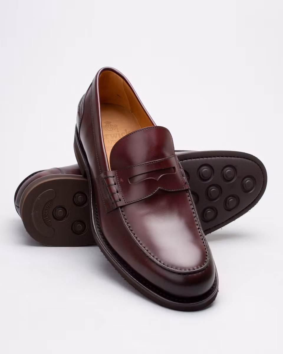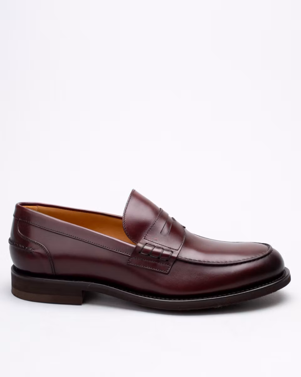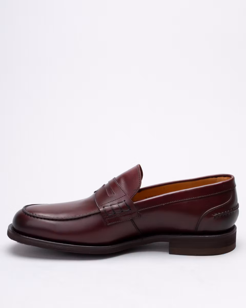 Classic penny loafer with moccasin toe from Berwick. Upper in burgundy calf leather. Leather insole. Vibram® Eton rubber outsole. Goodyear welted construction. Handcrafted in Spain. Last: Ho768