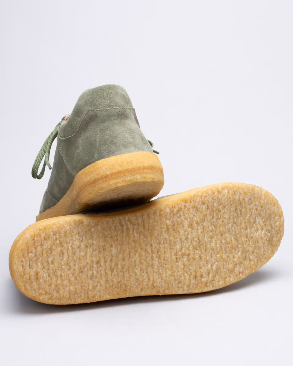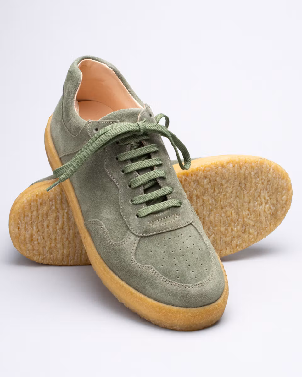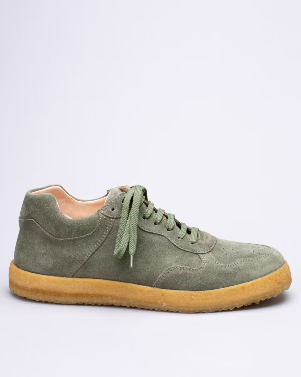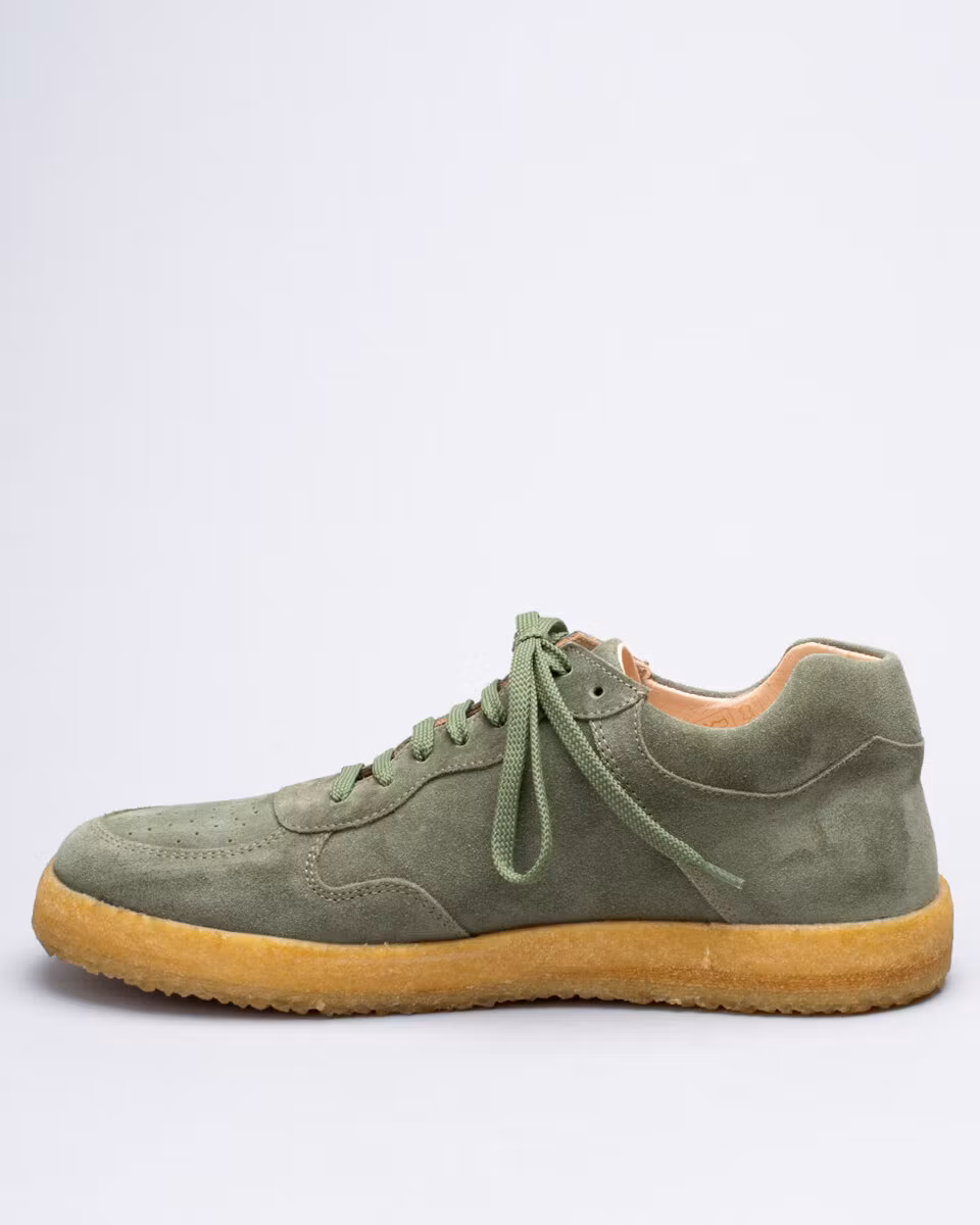 Tennis shoe siluette from Italian Astorflex. Upper in light green suede. Full leather lining. Detachable, leather lined, insole. Natural crepe rubber outsole. Made in Italy.