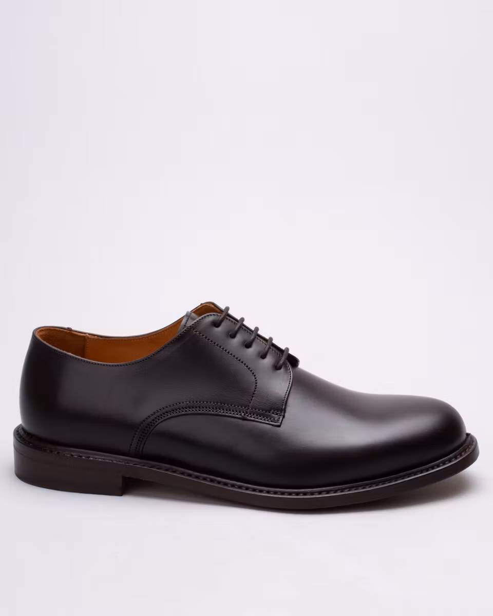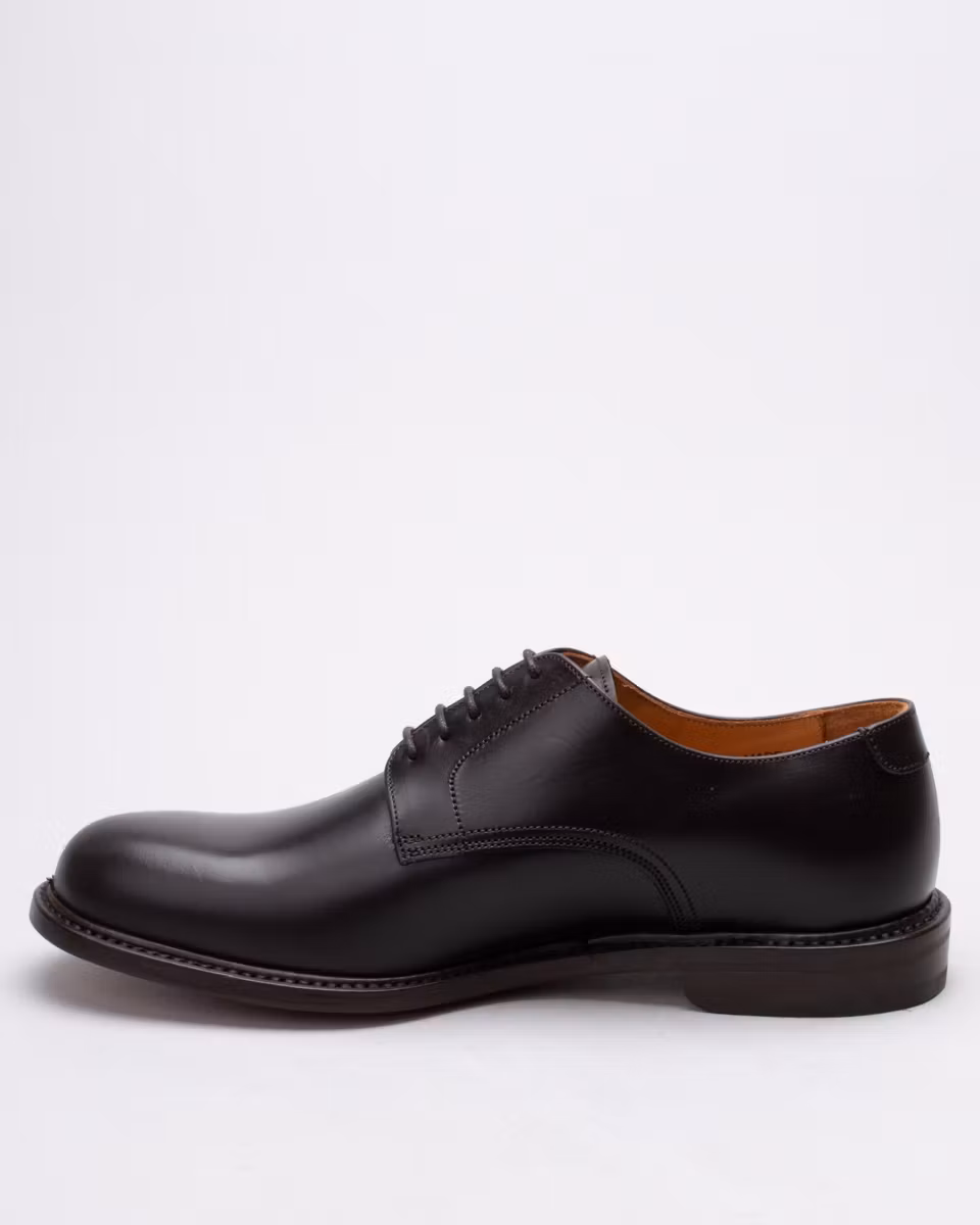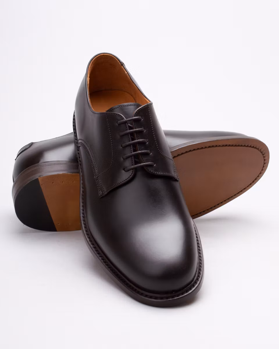 Dress derby shoe with single leather sole from