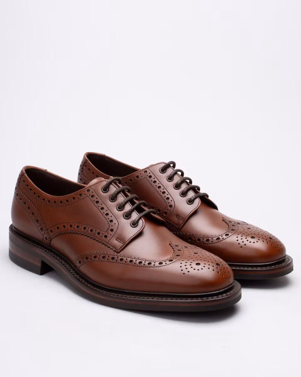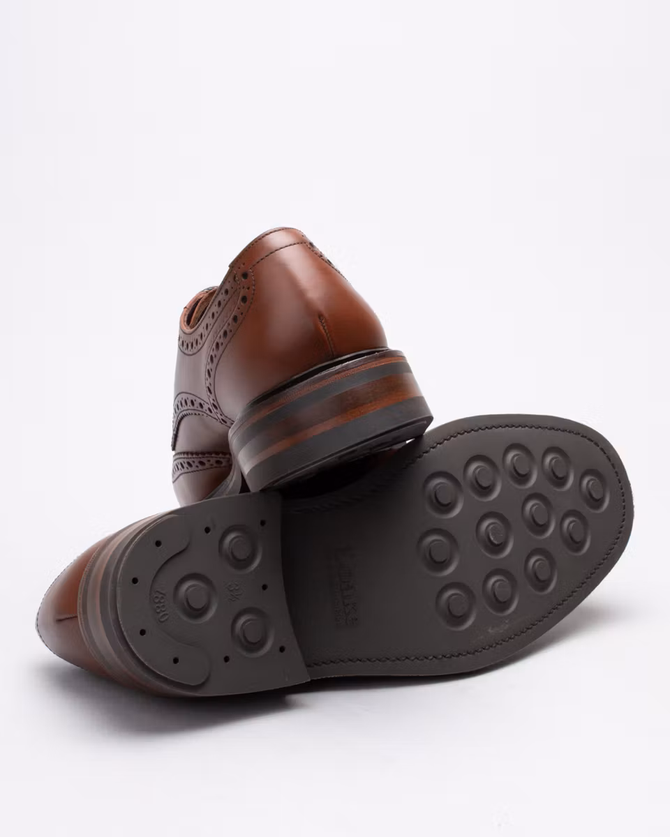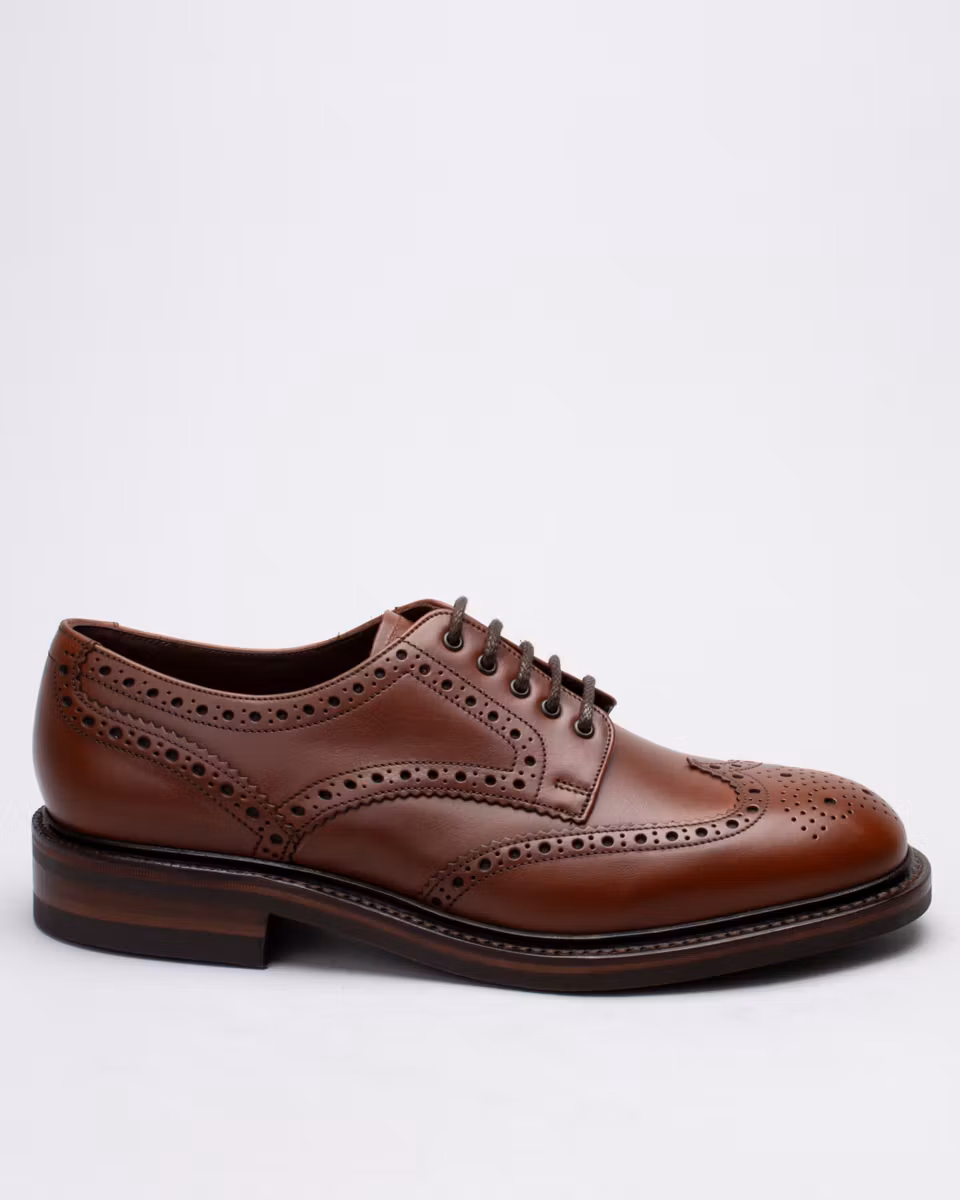 Classic brogue from Loake. Upper made of dark brown calf leather. Fully leather lined. Leather insole. Rubber outsole. Goodyear welted construction with storm welt. Made in England. Last: 024/F