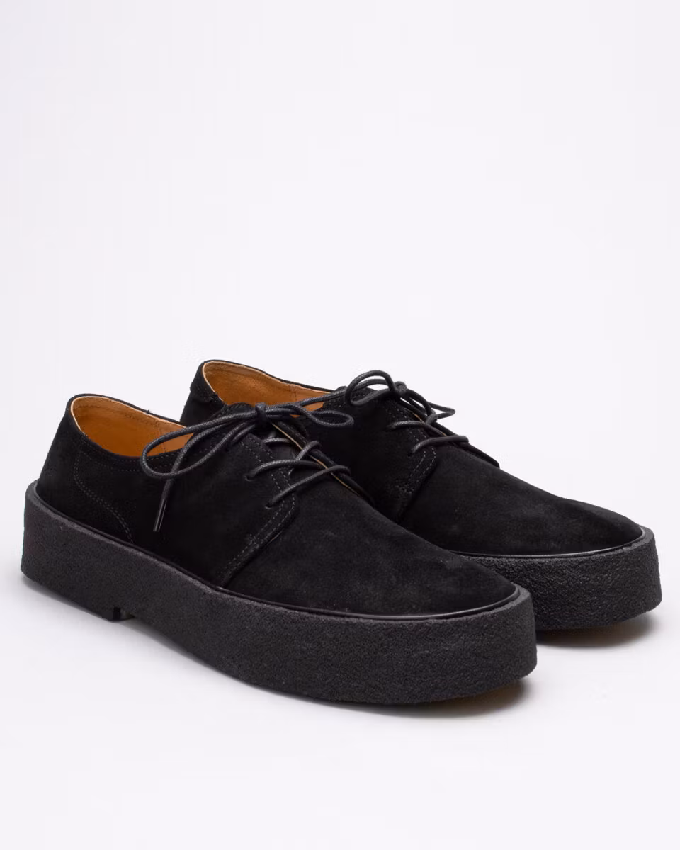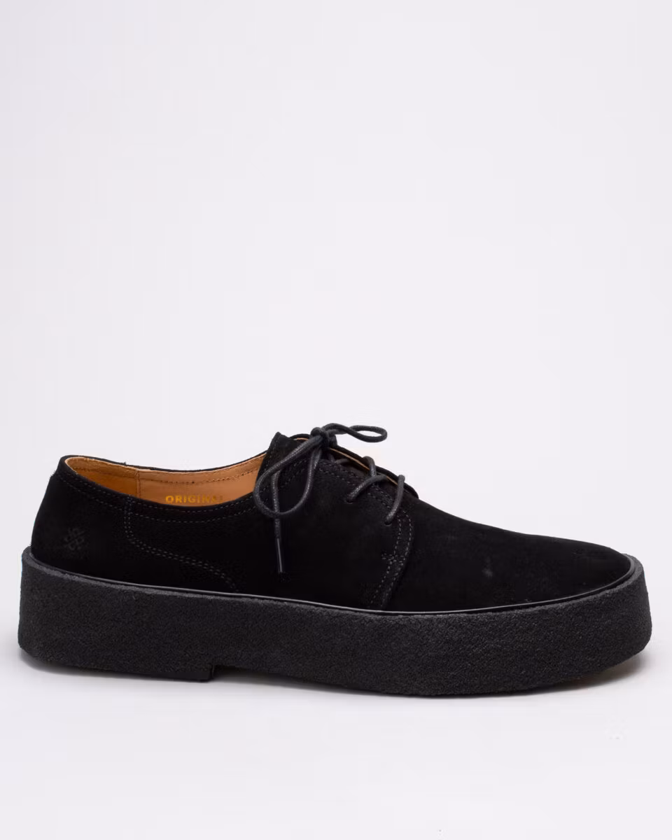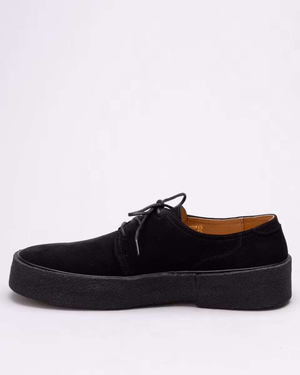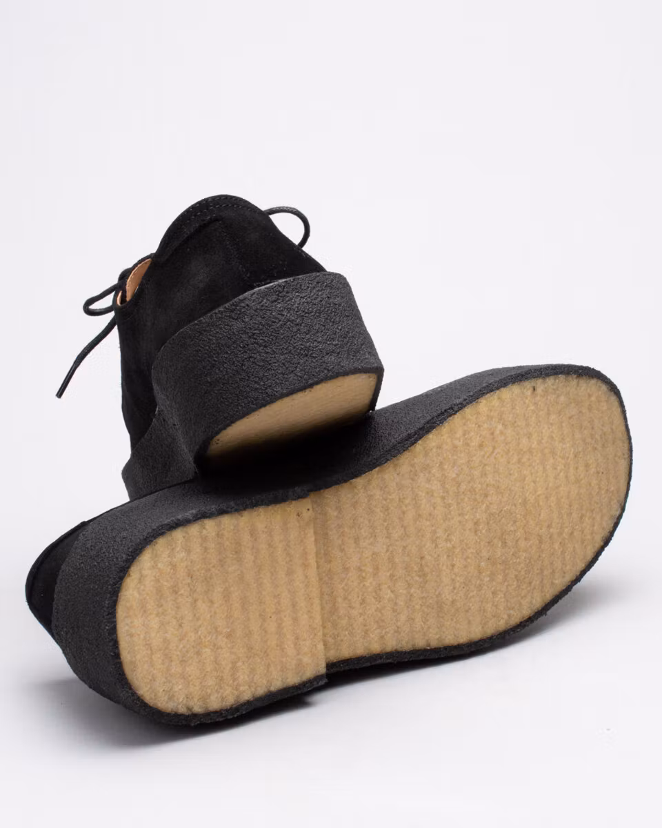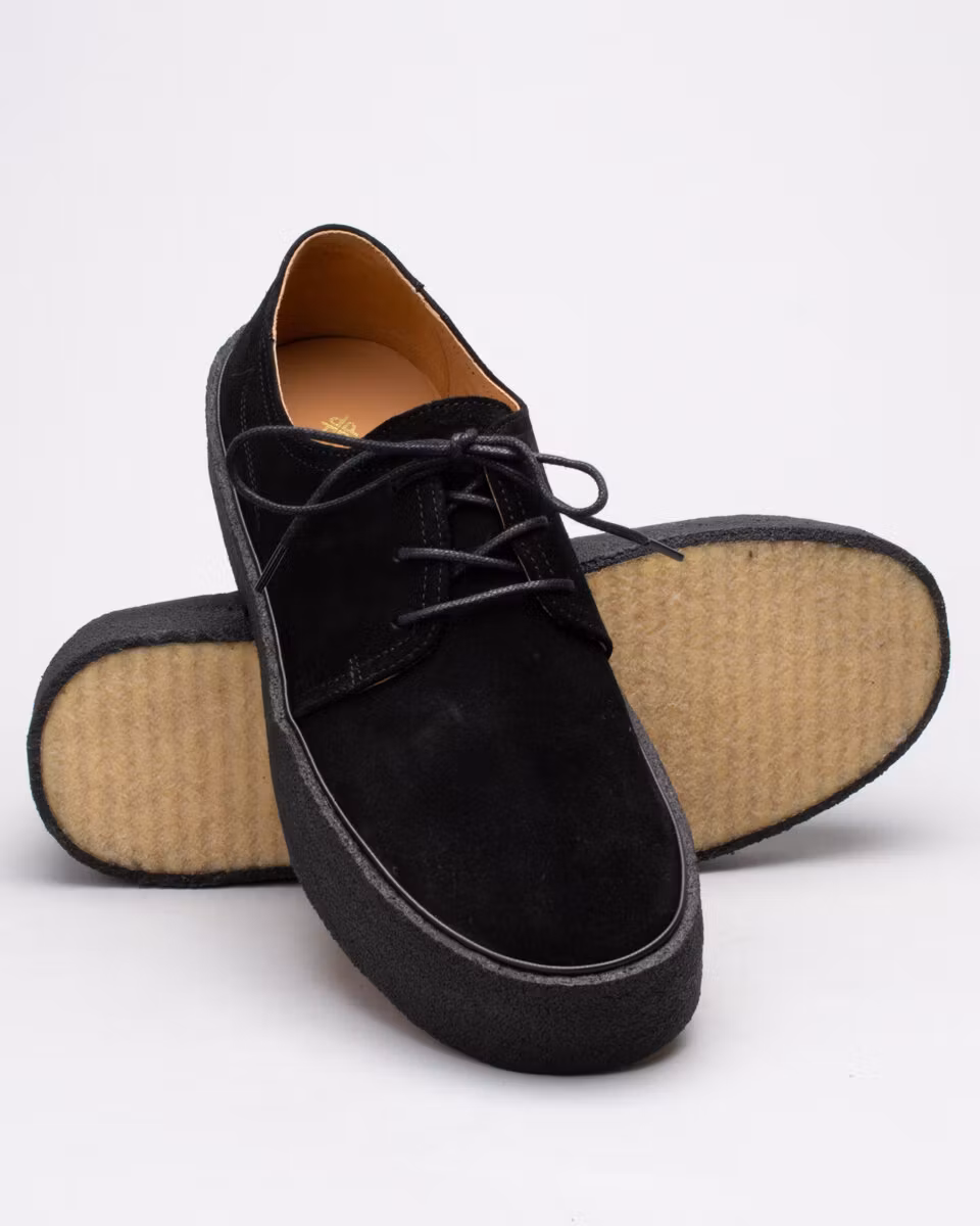 Playboy's classic since 1936 in plain black suede. Natural rubber outsoles. Leather insole. Full leather lining. Made by hand in Europe.