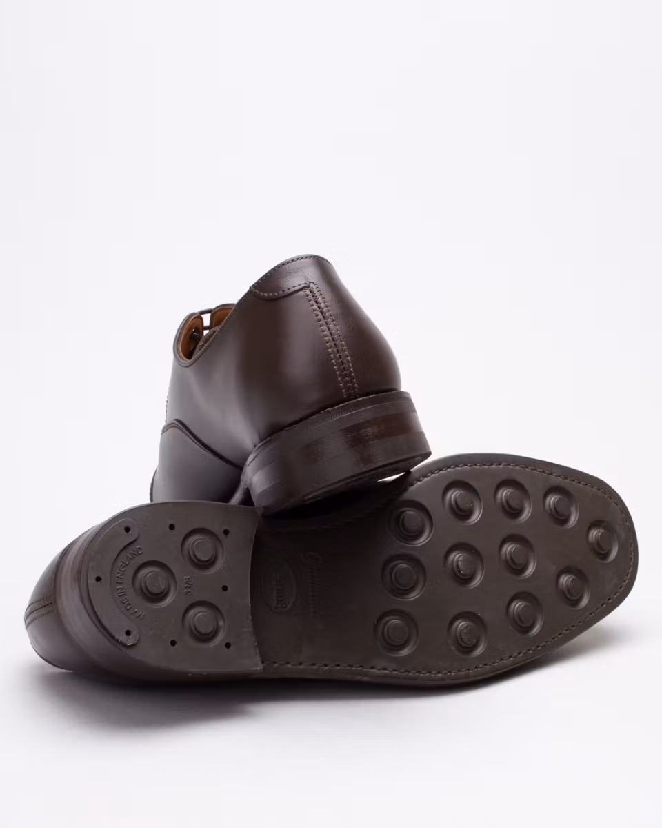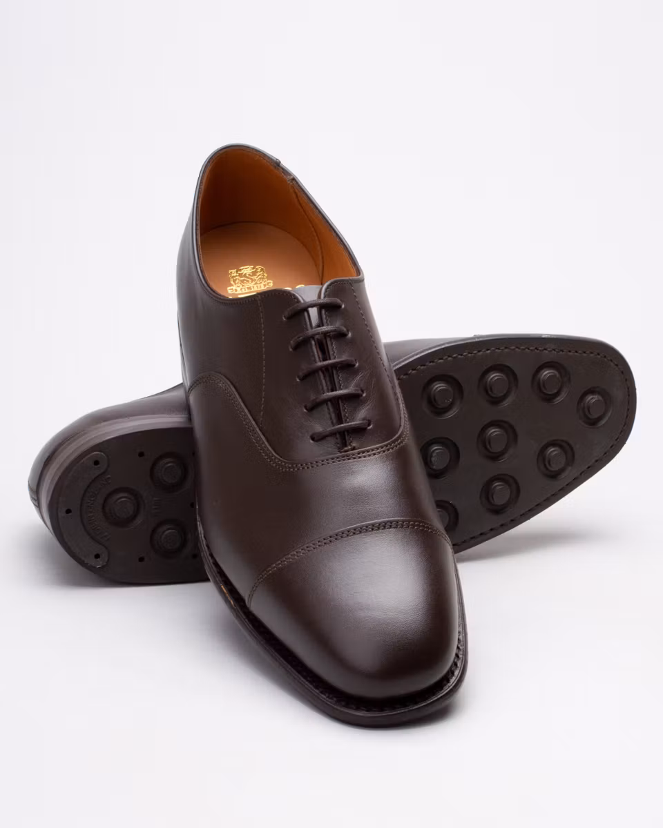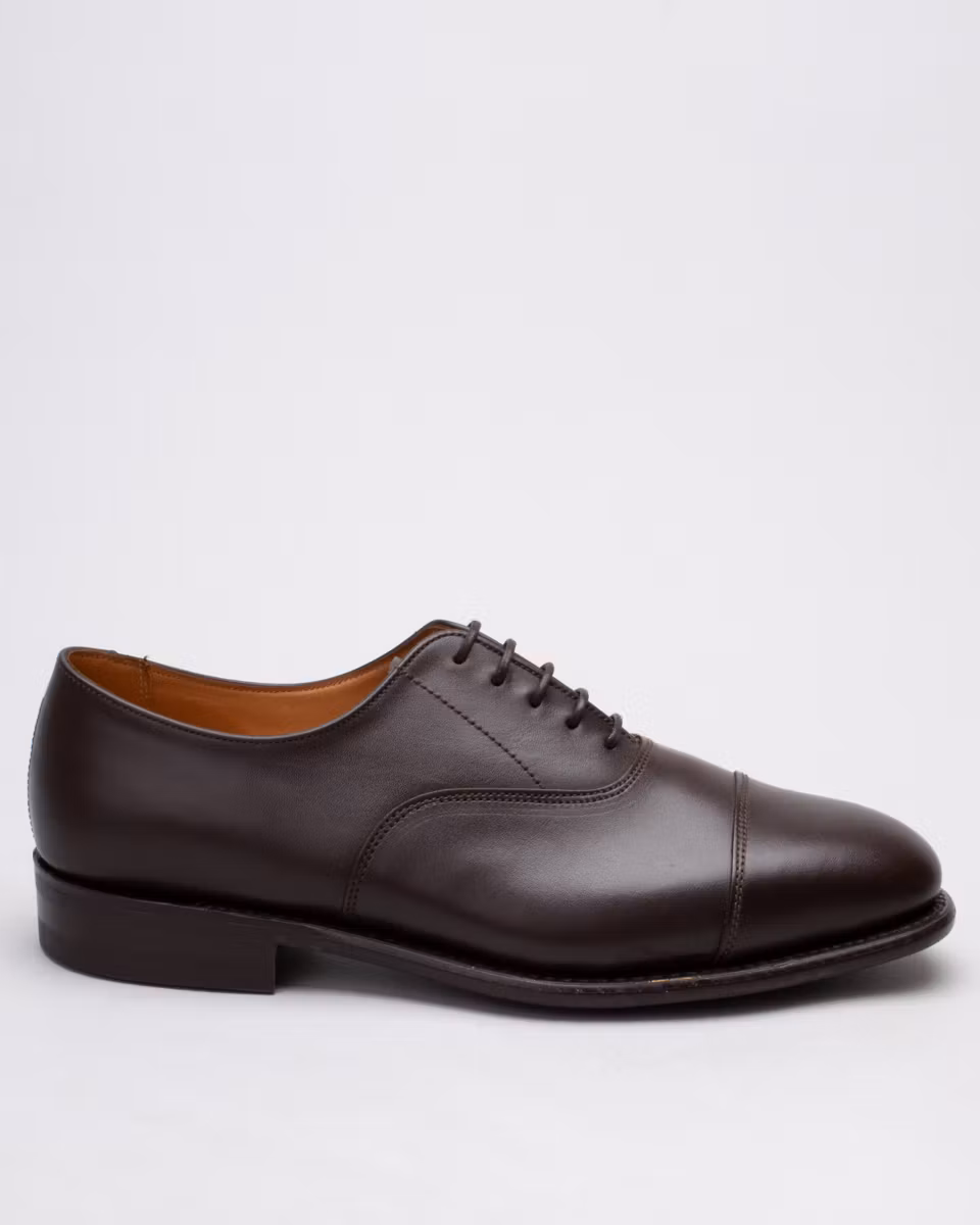 Classic cap-toe oxford from renowned British shoemaker Sanders & Sanders. Upper in dark brown calf leather. Fully leather-lined. Insole in full-grain leather. Outsole in rubber from Itshide®/Dainite®. Goodyear-welted construction. 100% Made in England. Standard width last, F.