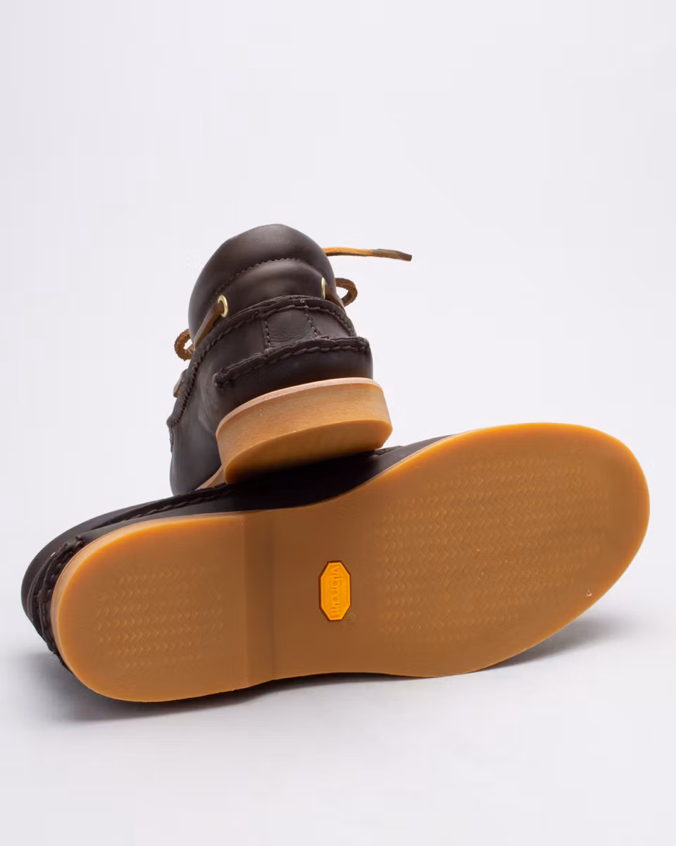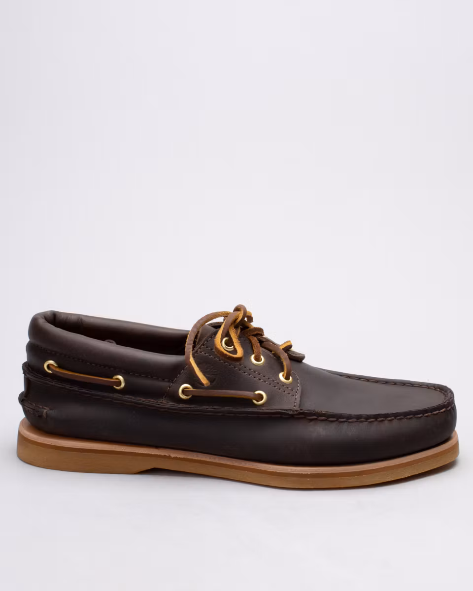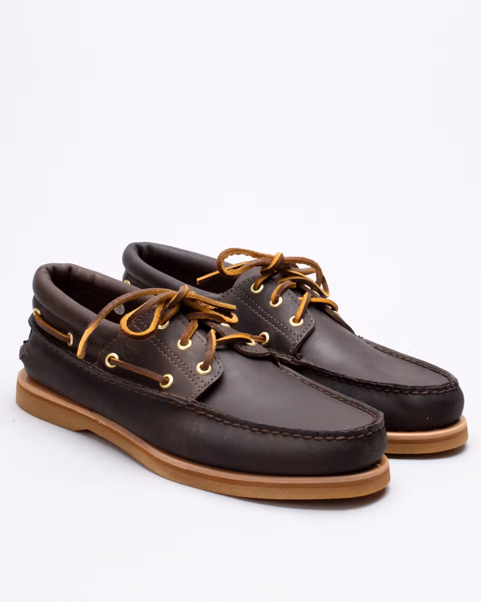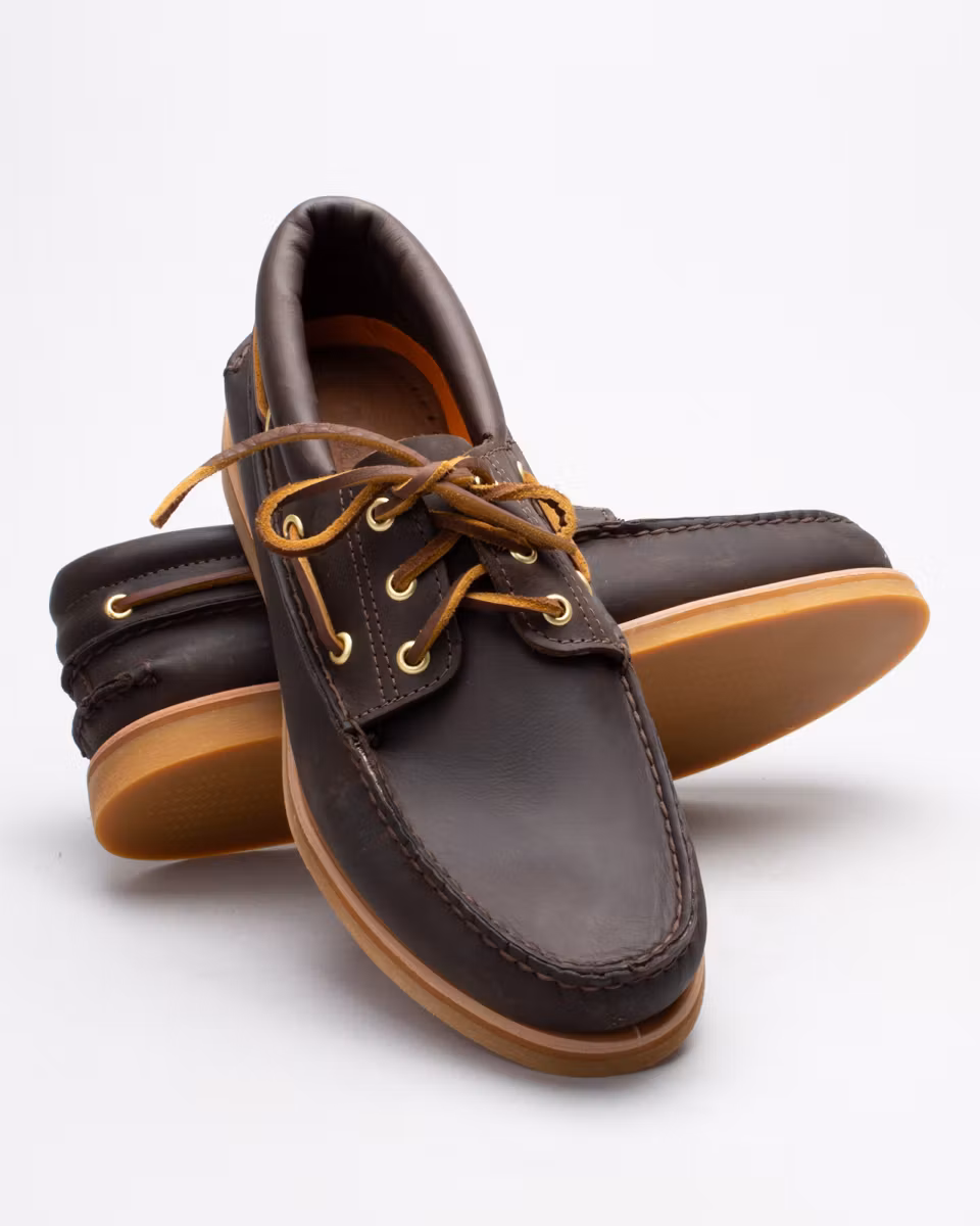 Timberland’s classic boat shoe in a premium execution. Upper in dark brown oiled full-grain leather. Padded collar. Handsewn construction with 360° rawhide lacing. Unlined. 3/4-length leather-lined insole. Leather midsole. Rubber outsole from Vibram®. Made in the Dominican Republic.