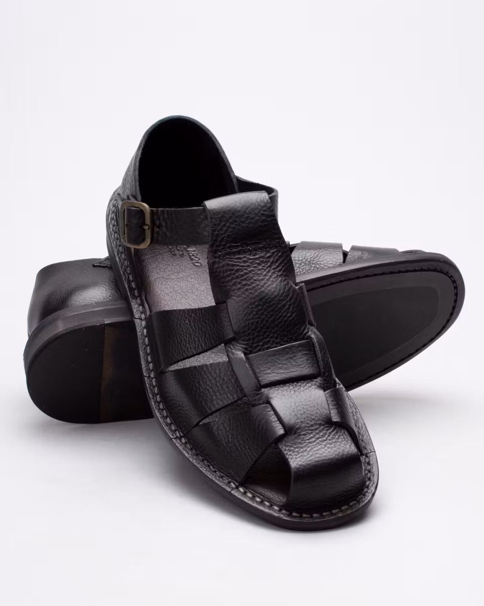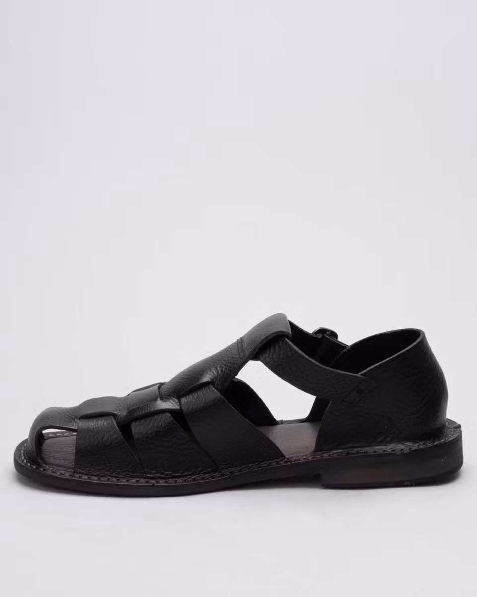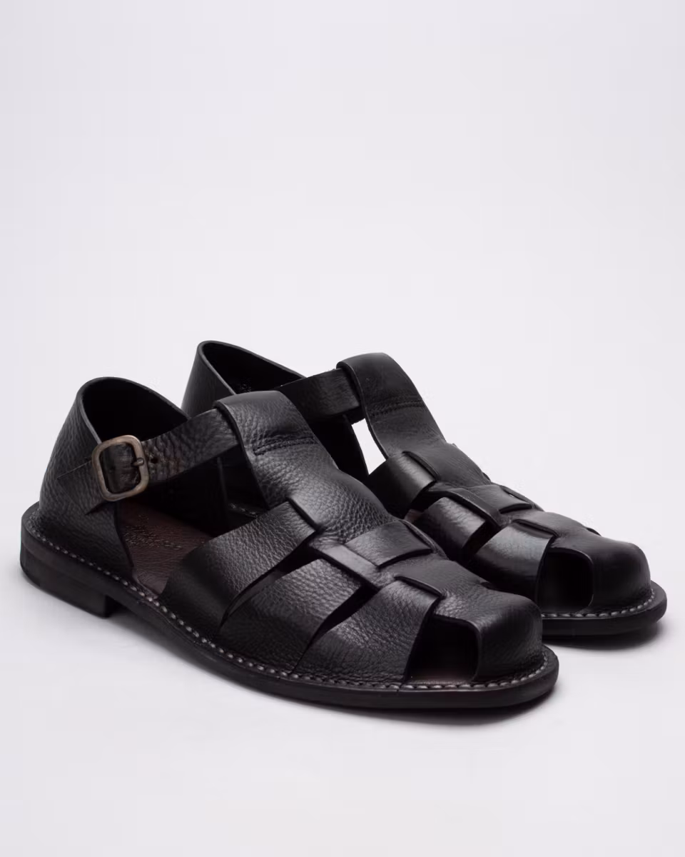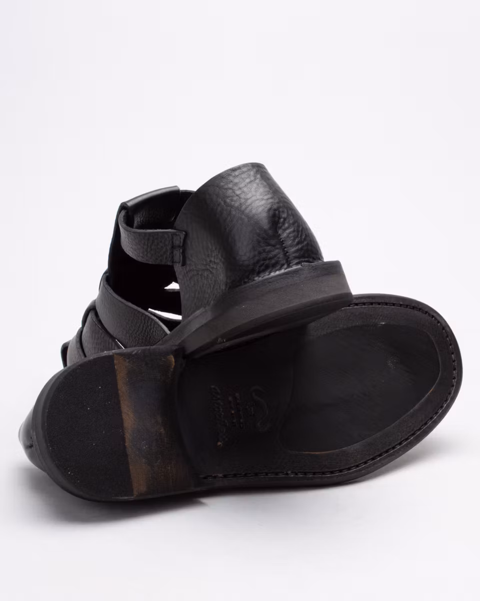Monkflex is a classic leather sandal from the Italian manufacturer Astorflex. Upper in black, full grain, calf leather. Unlined. Leather insole. Hybrid outsole in leather and rubber. Stitch-down construction. Made in Italy.