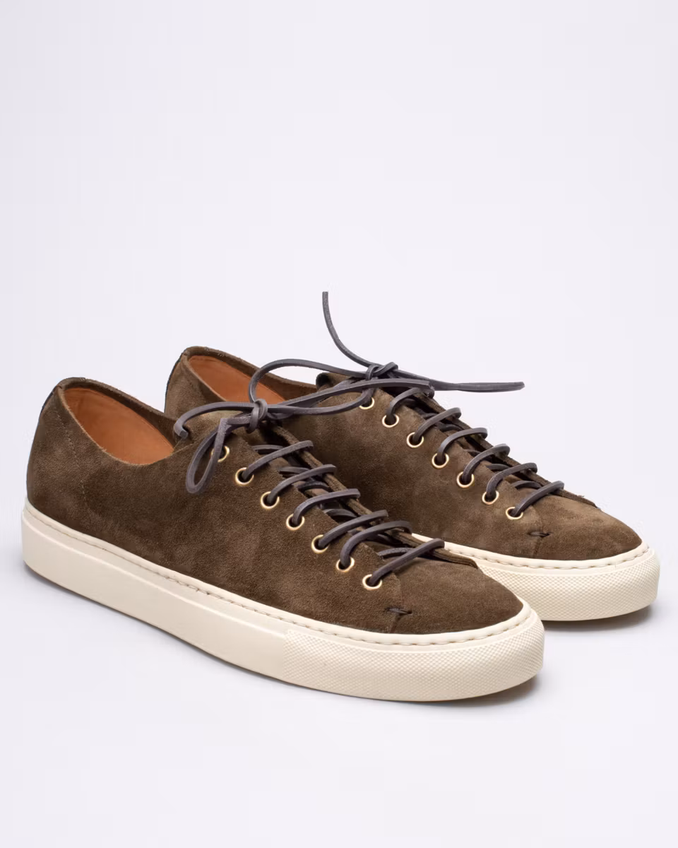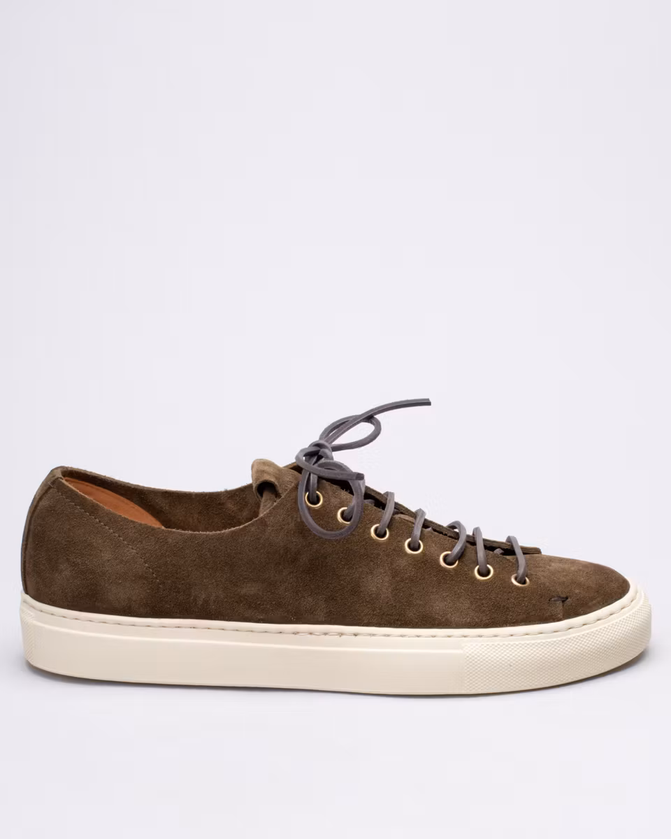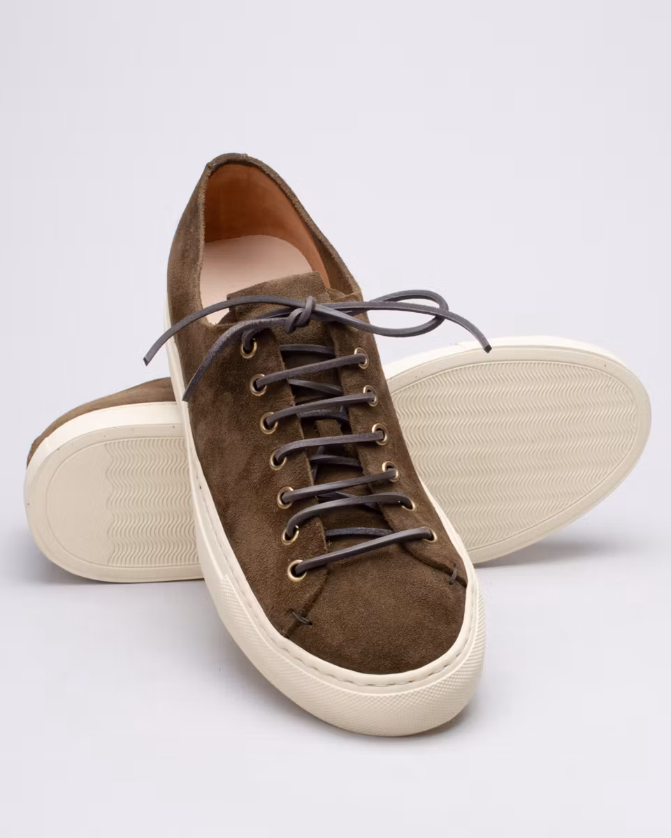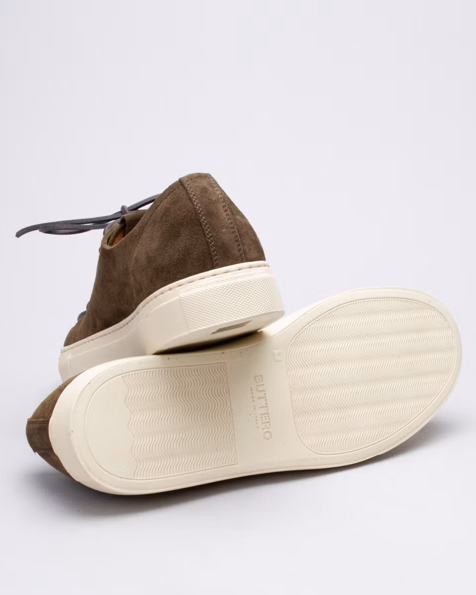 Sneaker from Italian Buttero. Upper in high quality Italian dark green suede. Detachable, leather lined, insole. Unlined. Serena rubber outsole from Margom. Leather laces. Re-craftable. Made in Italy.
