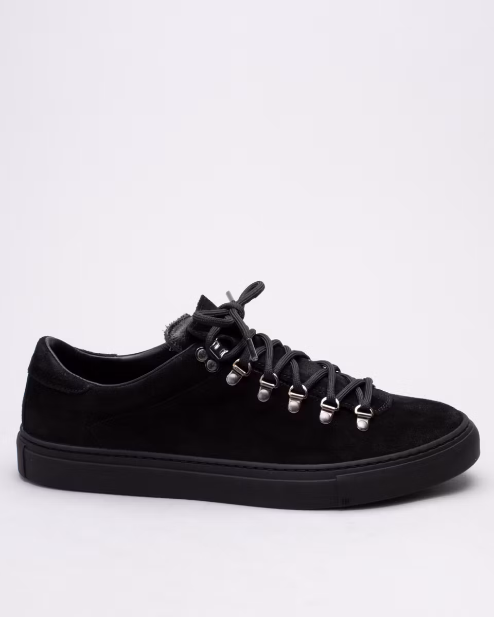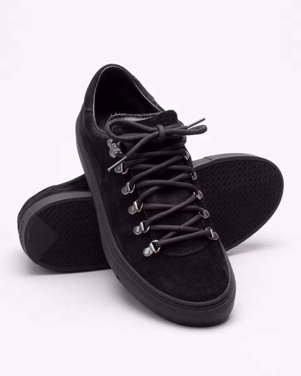 Diemme tennis sneakers inspired by classic hiking footwear. Made with a black suede upper and a fully leather-lined interior. Equipped with a removable, leather-covered insole and a premium Margom rubber outsole. Crafted in Italy.