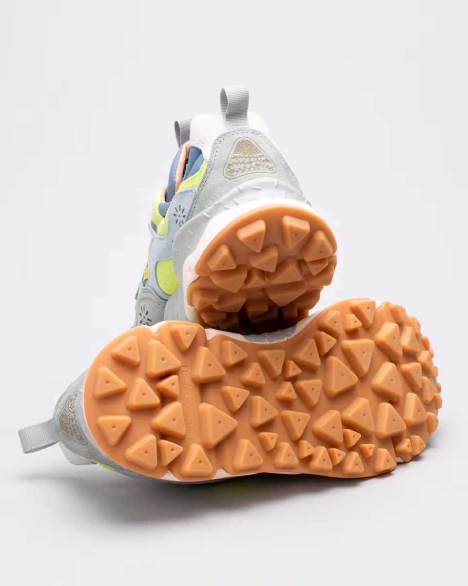 Sporty and outdoor-inspired, the Yamano sneaker from Japanese Flower Mountain combines active details with a stylish aesthetic – making it perfect for the city as well. The technical textile upper features suede details with the brand’s characteristic overlapping construction, trekking-style laces, and flower-shaped accents. Rugged outsole in lightweight rubber. The antibacterial insole in natural cork protects the foot and provides comfort throughout the day.