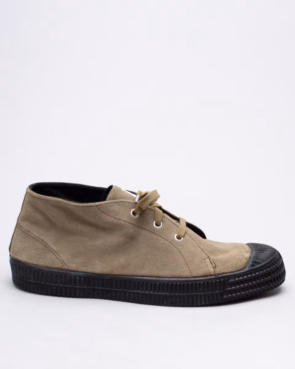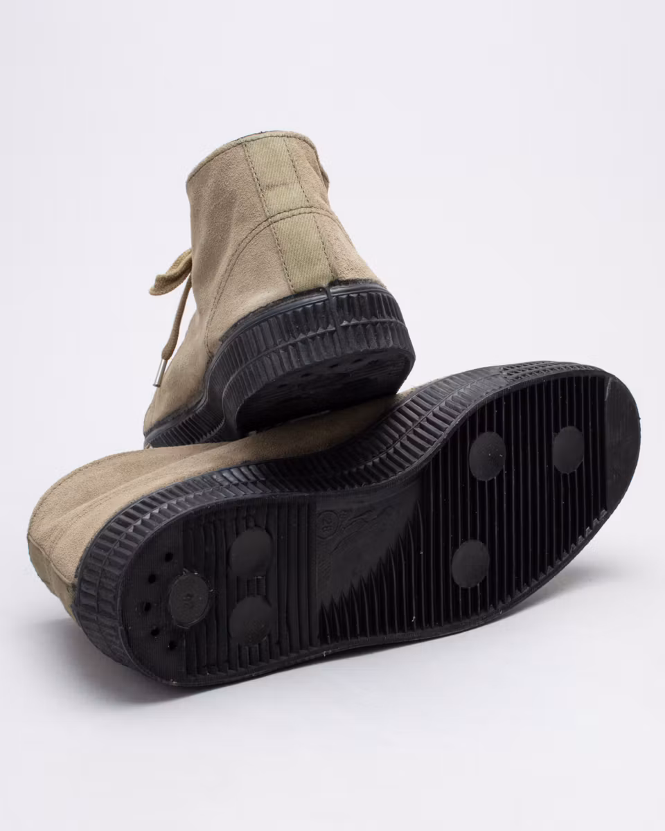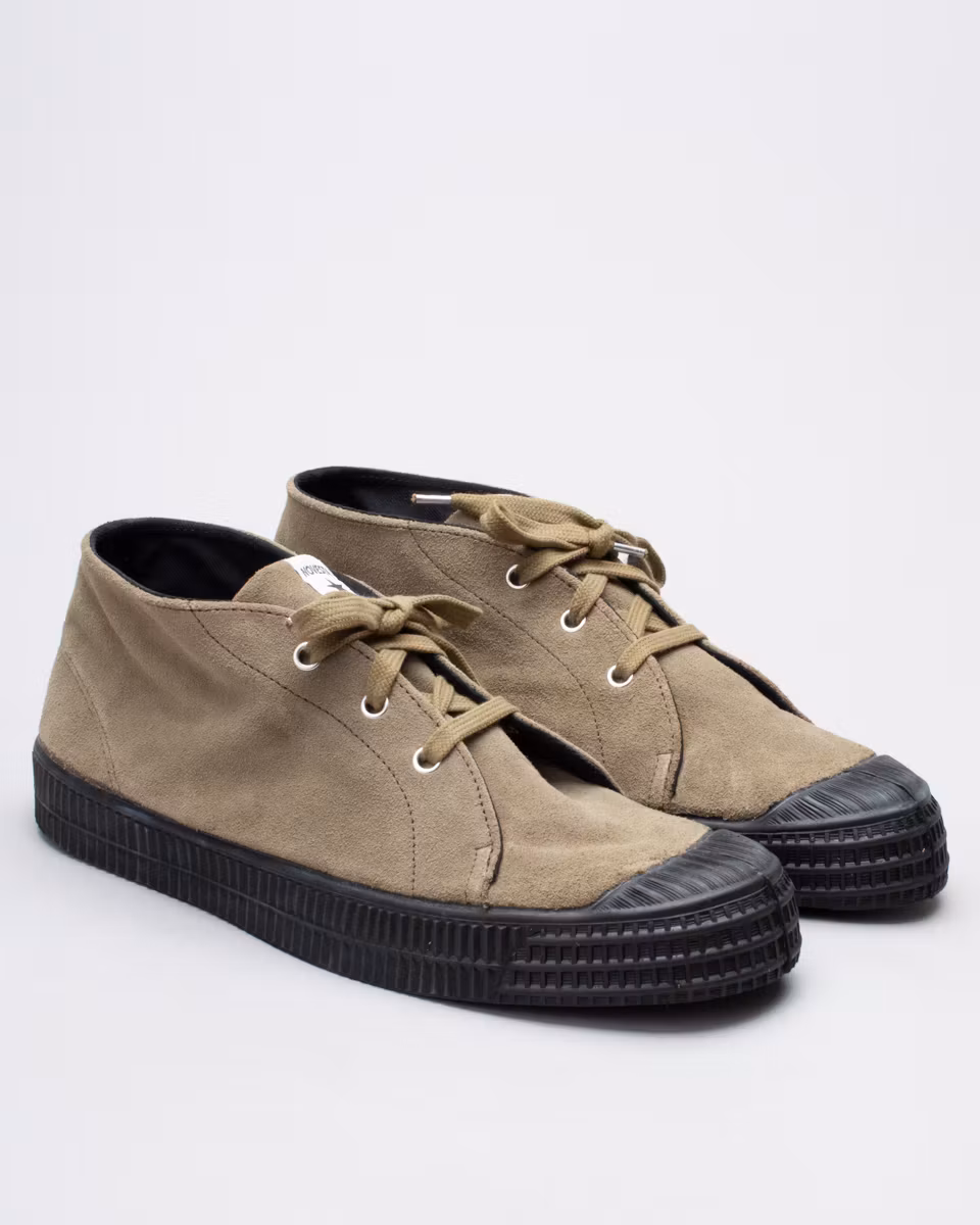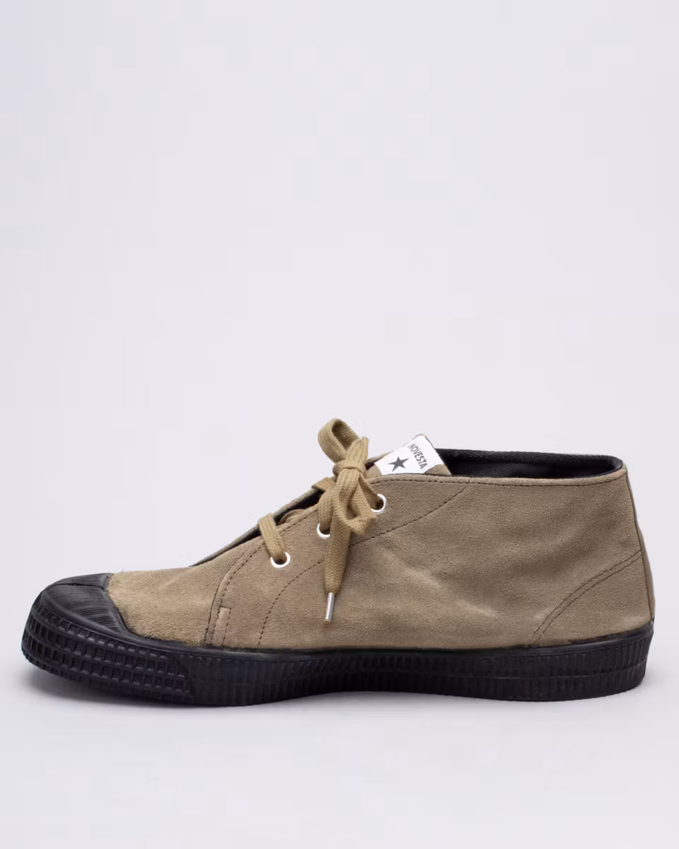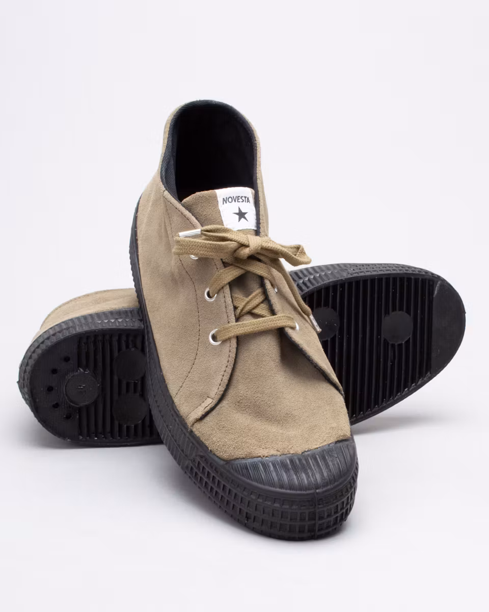 Chukka in suede based on Novesta’s Star Master. Upper in khaki suede. Removable insole. Vulcanized rubber outsoles. Design collaboration with Noel Gallagher. Proceeds from sales go to Teenage Cancer Trust.