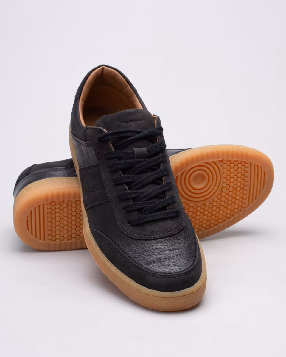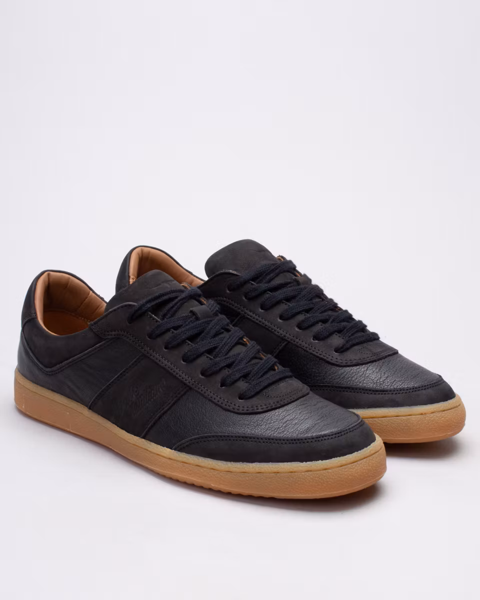 Sneakers from R.M. Williams. Upper in black calf leather with black nubuck detailing. Fully leather lined. Removable, leather-lined insole. Rubber outsole. Made in Portugal.