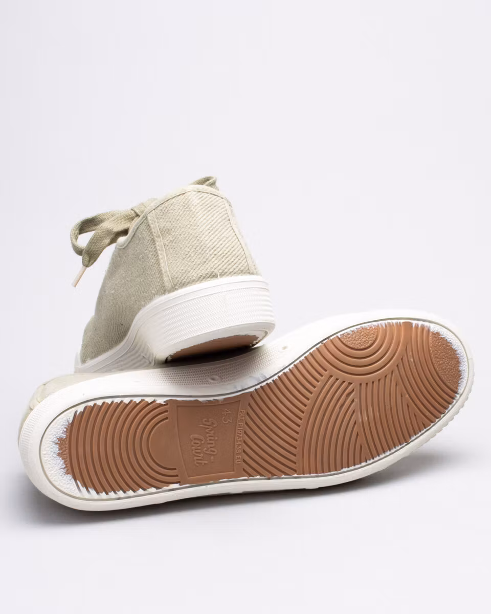 Spring Court's classic G2 in heavy twill. Comfortable, textile lined, insole. Latex rubber outsole. Ventilated through four holes in the outsole.