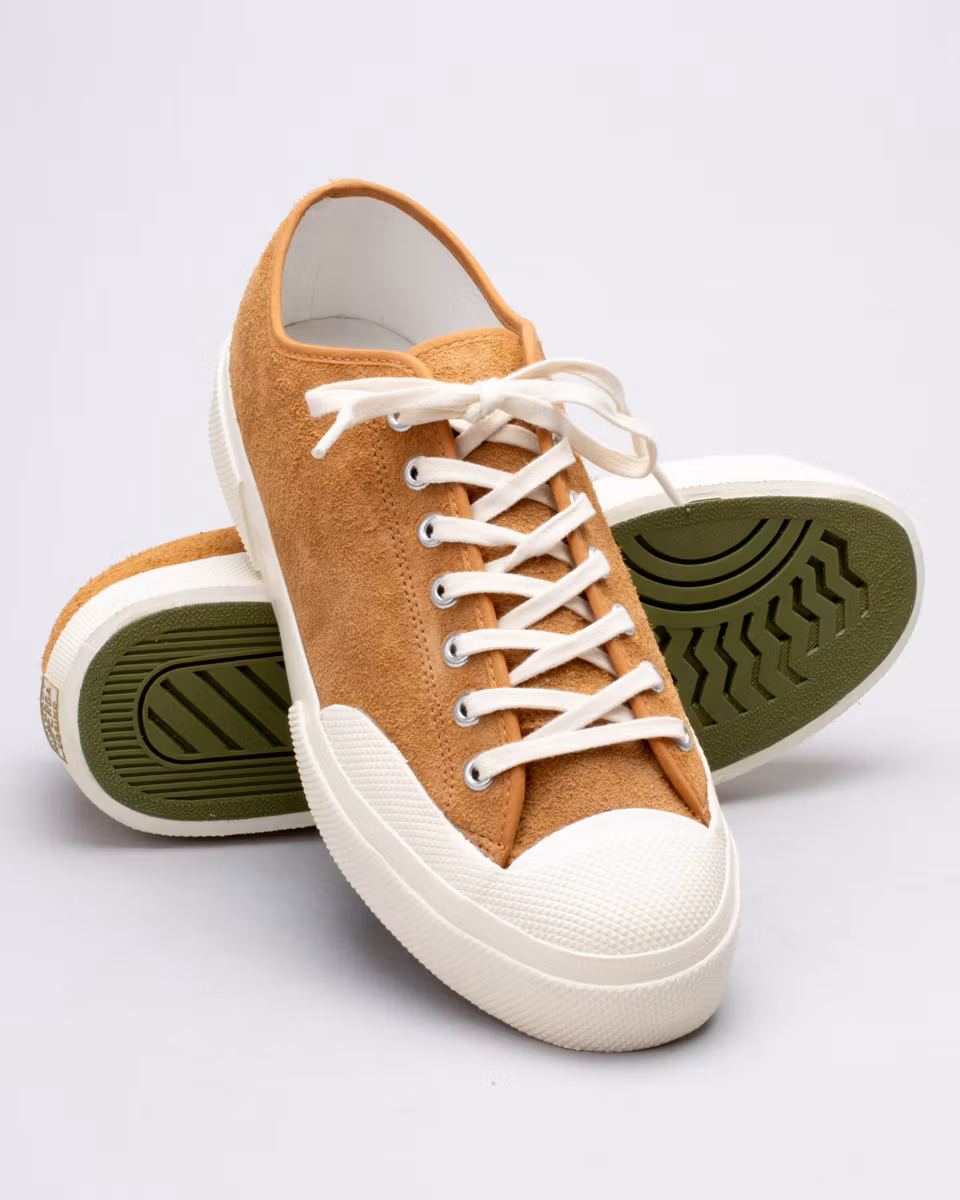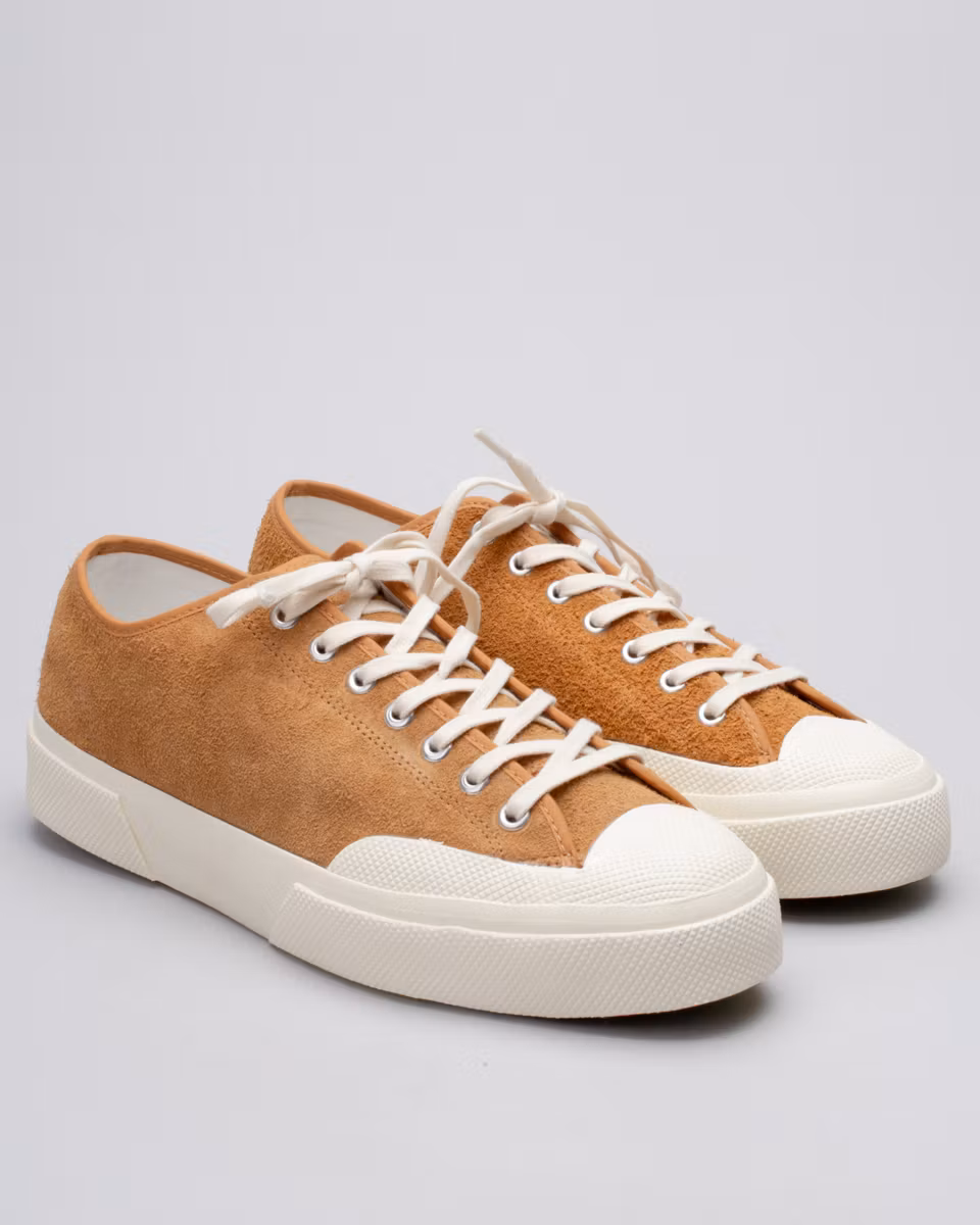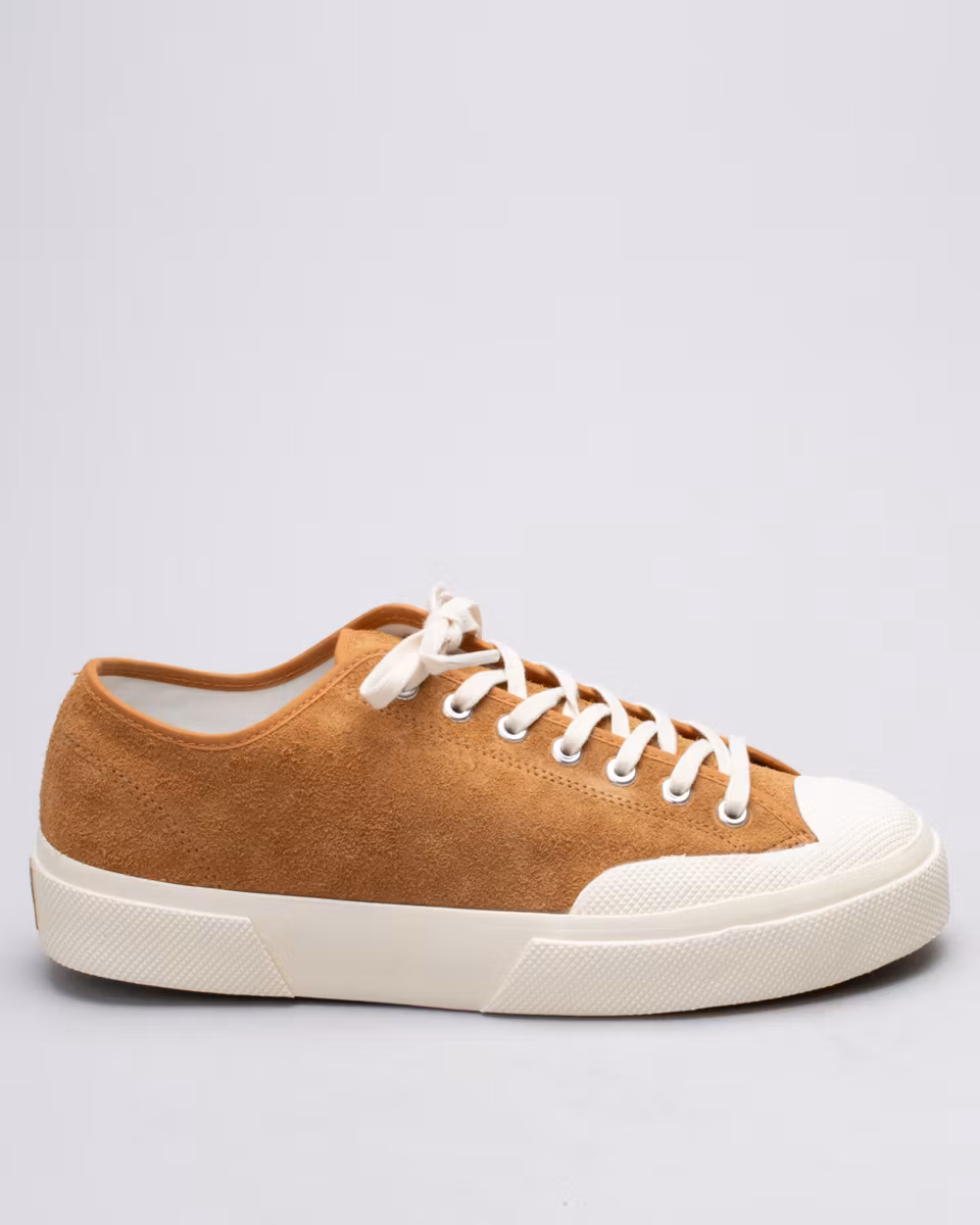 Classic tennis shoe siluette from Italian Superga. The Artifact collection is designed together with Japanese designer Teppei Sugaya and mixes European designs with Japanese materials. Upper in tobacco suede. Vulcanized rubber outsole.