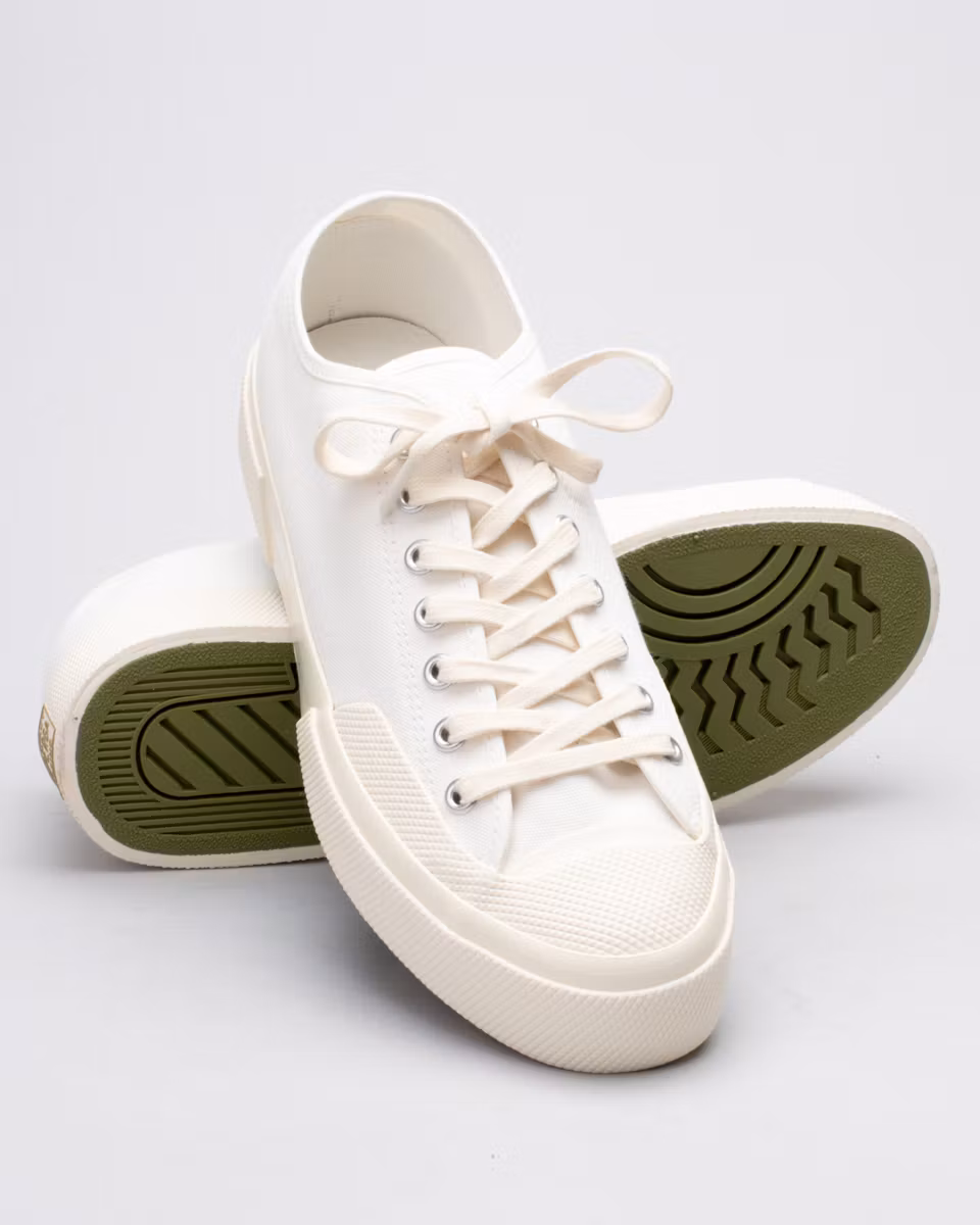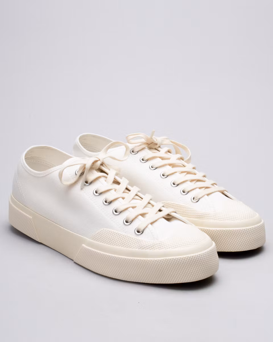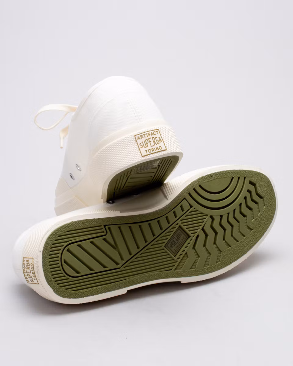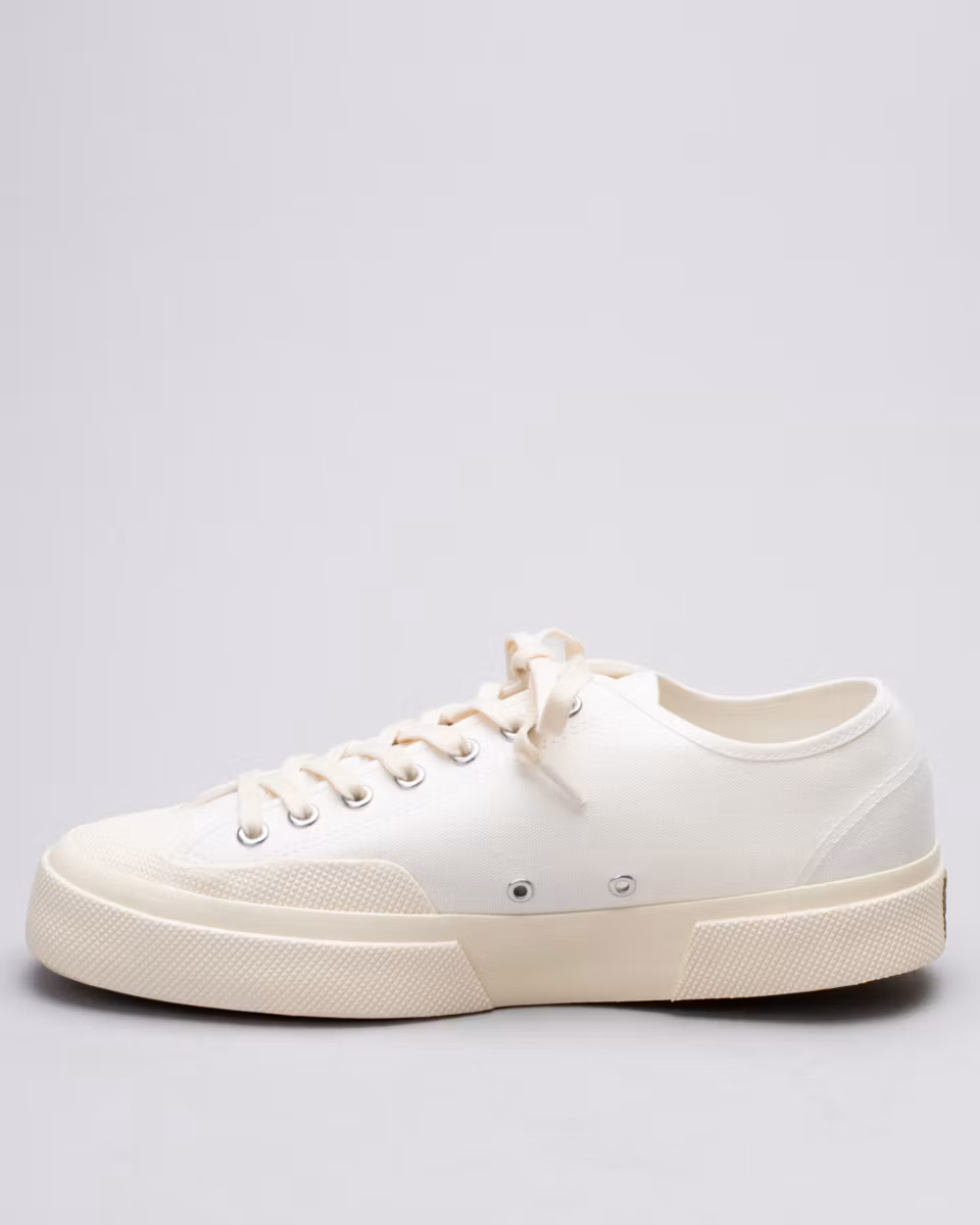 Classic tennis shoe siluette from Italian Superga. The Artifact collection is designed together with Japanese designer Teppei Sugaya and mixes European designs with Japanese materials. Upper in white twill. Vulcanized rubber outsole.