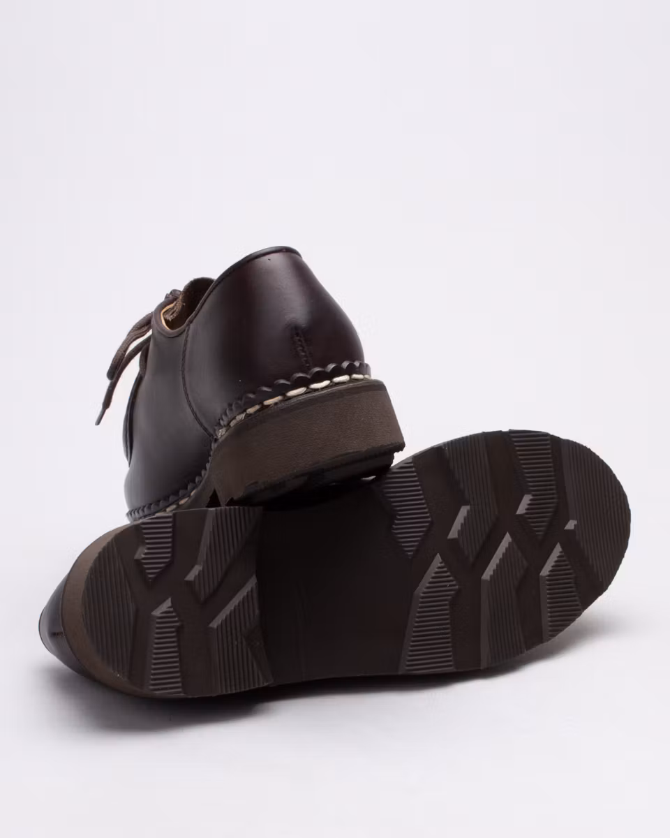 Classic model from the French brand Paraboot in women's size. Upper in dark brown waxed leather. Leather insole. Rubber outsole. Fully leather-lined. 'Norwegian Welt' construction. Made in France.