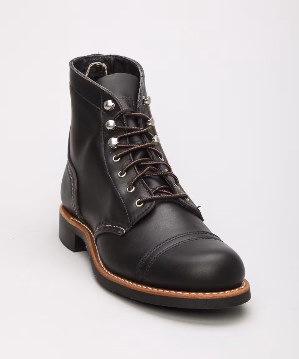 Red Wing Shoes Iron Ranger for women. Built on a more narrow B-last. Padded, leather insole. Latex rubber outsole. Goodyear welted construction. Made in USA.