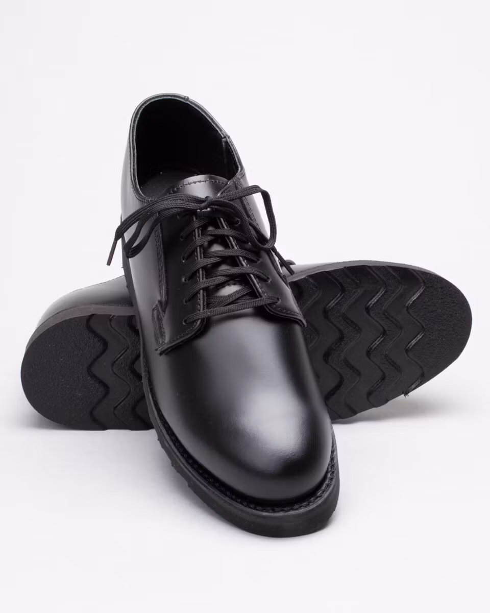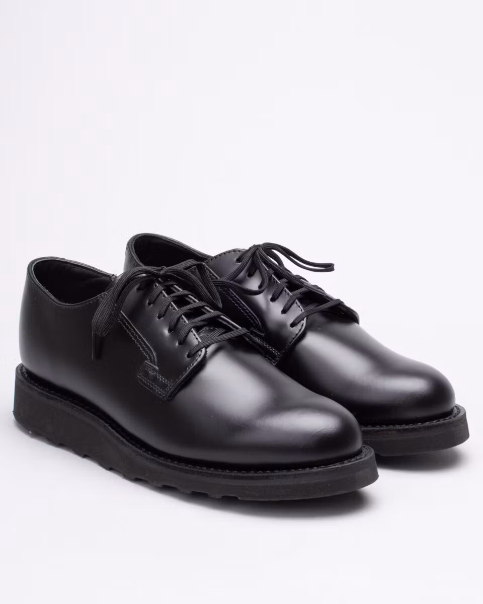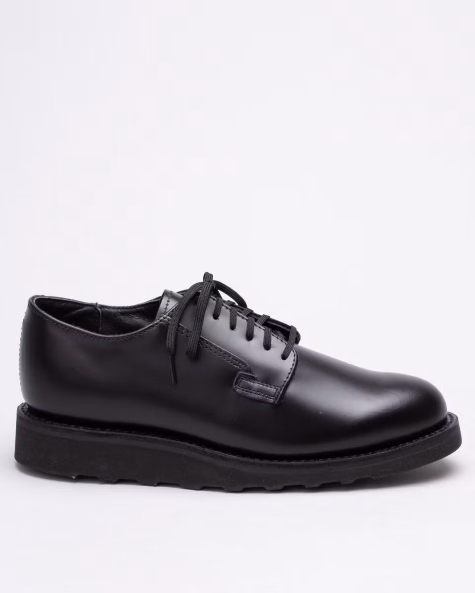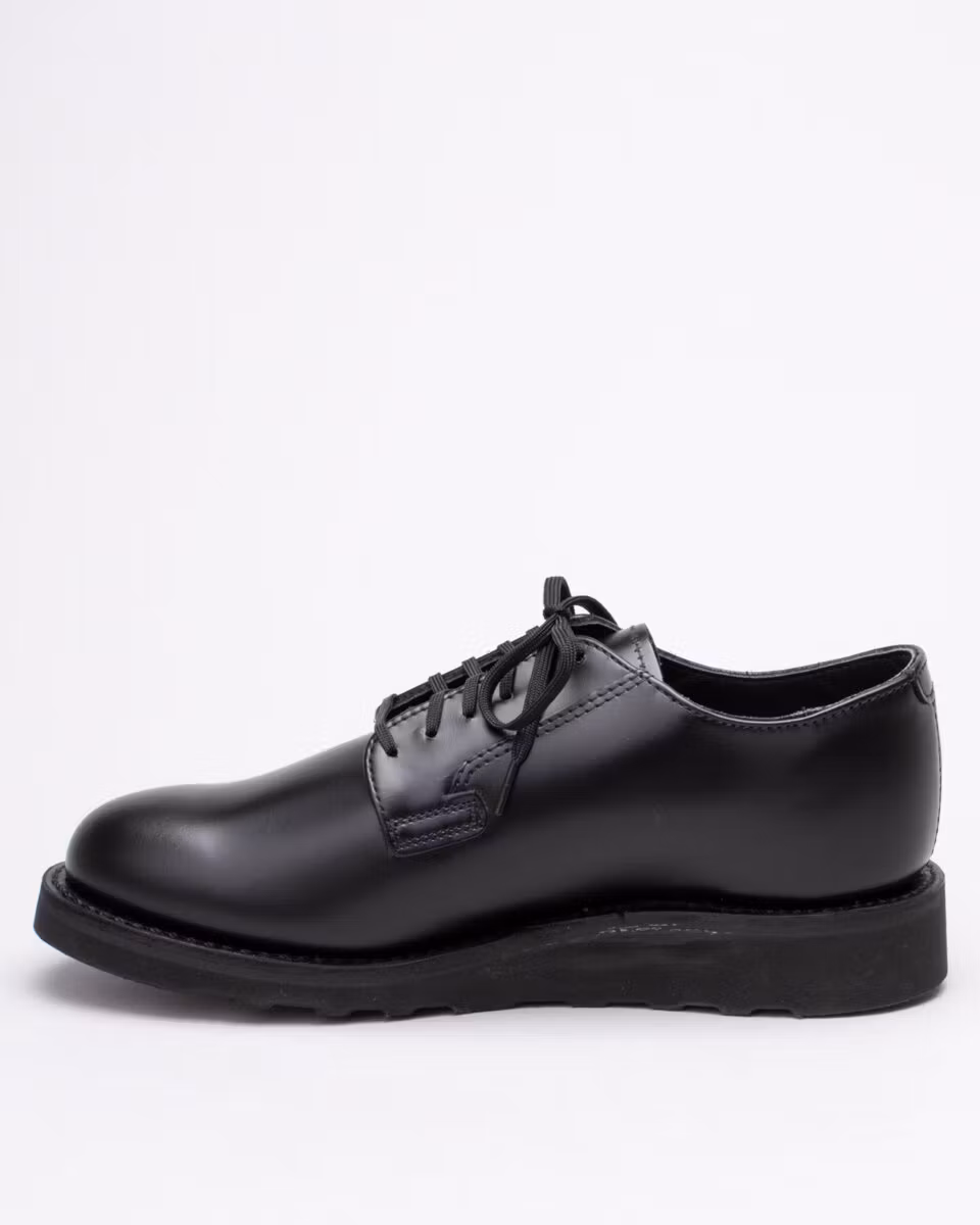 Women verson of the iconic Postman oxford from Red Wing Shoes. Upper in black leather. Leather lined. Leather insole. Rubber outsole. Goodyear welted construction. Made in USA. Womens last, B.